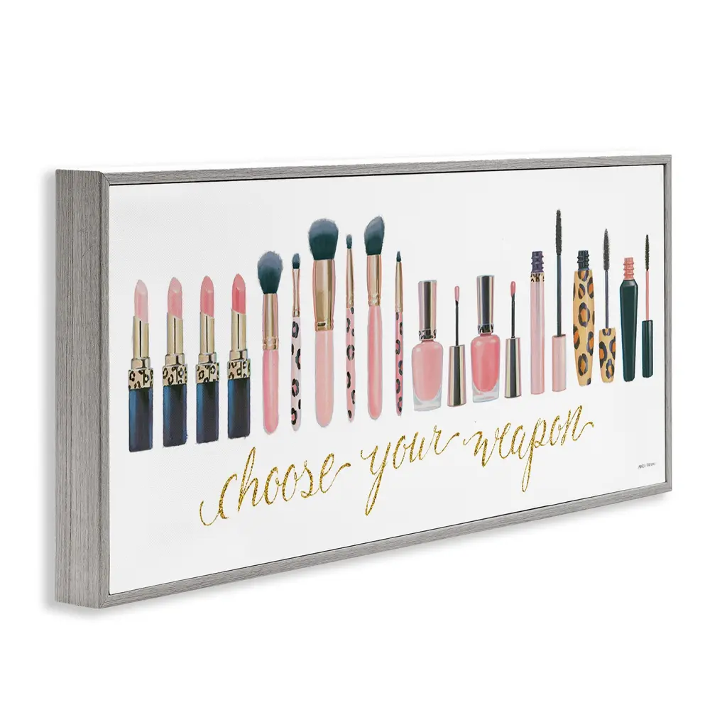 Stupell Choose Your Weapon Glam Makeup Framed Giclee Art Design By Marco Fabiano - 24 X 10 - Grey