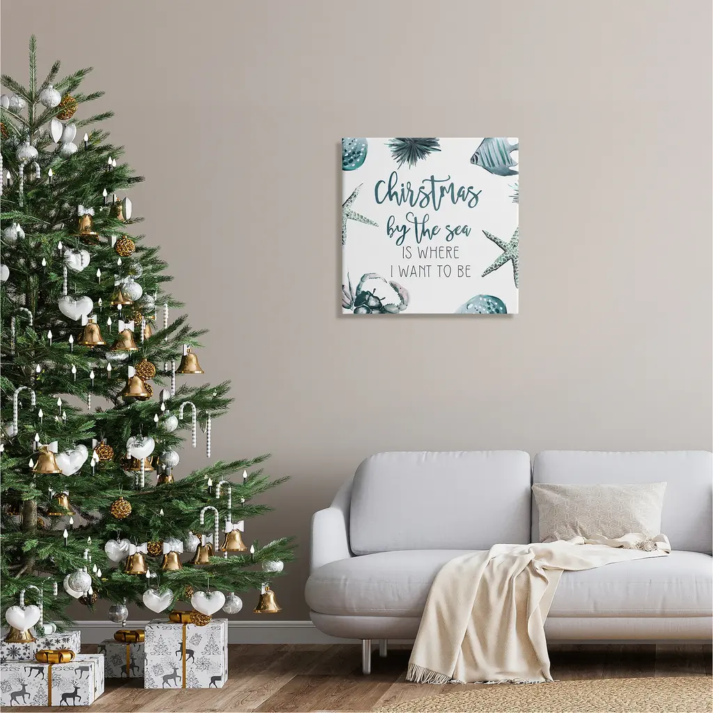 We create our stretched canvas to the highest standards. Using only the highest quality inks and canvas on Mimaki printers, we hand-cut and stretch each piece over a 1.5-inch thick wooden frame for hanging. As a result, the art comes ready to hang on the sturdy ledge with no installation required. Stupell Wall Art is made in the USA.Features: Dimensions: 17 x 1.5 x 17 InchesStretched Canvas Sizes Include Standard: 17 x 1.5 x 17 Large: 24 x 1.5 x 24 X-Large: 30 x 1.5 x 30 Oversized: 36 x 1.5 x 36Wall Art is Ready to Hang - No Installation or Hardware Needed. For Easy Set Up Lean or Layer Artwork on Shelf or Against Wall.Our stretched canvas is created with the highest standards. We use only the highest quality inks and canvas on our in house Mimaki printers, and then hand cut and stretch each piece over a 1.5 inch thick wooden frame for hanging. Made In USA.Artwork Relates To: Animal, Fish, Sea Life, Starfish, Crab, Holiday, Christmas, Christmas by the Sea Is Where I Want To BeDesign by Ziwei Li