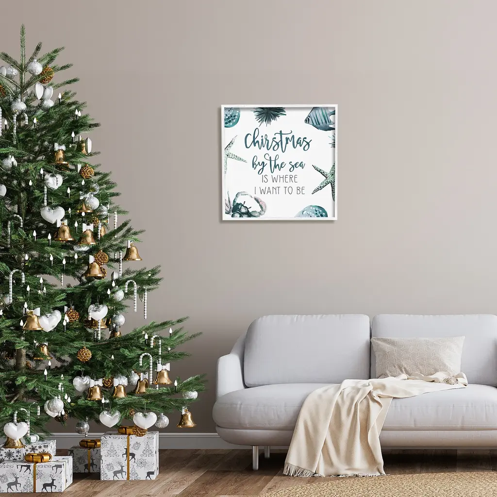 Add dimension to any room with our textured Framed Giclee Artwork. Our framed artwork is securely mounted into a 1.5-inch thick wood grain frame and ready to hang. Frames are available in three alluring styles: black, gray farmhouse and white. In addition, you should check out our oversized options if you want a statement piece. Stupell Wall Art is made in the USA.Features: Dimensions: 12 x 1.5 x 12 FramedFramed Giclee Sizes Include Standard: 12 x 1.5 x 12 Large: 17 x 1.5 x 17 Oversized: 24 x 1.5 x 24Wall Art is Ready to Hang - No Installation or Hardware Needed. For Easy Set Up Lean or Layer Artwork on Shelf or Against Wall.Our giclée prints are carefully mounted on a durable MDF backing, and then perfectly finished in a 1.5 inch thick woodgrain frame. Mounted frame colors include black, gray farmhouse and white. Made In USA.Artwork Relates To: Animal, Fish, Sea Life, Starfish, Crab, Holiday, Christmas, Christmas by the Sea Is Where I Want To BeDesign by Ziwei Li