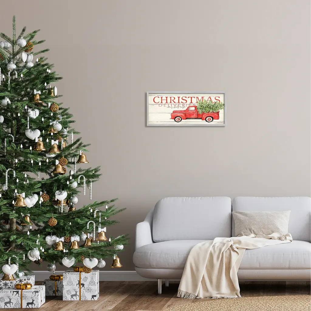 Add dimension to any room with our textured Framed Giclee Artwork. Our framed artwork is securely mounted into a 1.5-inch thick wood grain frame and ready to hang. Frames are available in three alluring styles: black, gray farmhouse and white. In addition, you should check out our oversized options if you want a statement piece. Stupell Wall Art is made in the USA.Features: Dimensions: 24 x 1.5 x 10 FramedFramed Giclee Sizes Include Standard: 24 x 1.5 x 10 Oversized: 30 x 1.5 x 13Wall Art is Ready to Hang - No Installation or Hardware Needed. For Easy Set Up Lean or Layer Artwork on Shelf or Against Wall.Our giclée prints are carefully mounted on a durable MDF backing, and then perfectly finished in a 1.5 inch thick woodgrain frame. Mounted frame colors include black, gray farmhouse and white. Made In USA.Artwork Relates To: Holiday, Christmas, Rustic, Truck, Christmas Tree, Christmas DeliveriesDesign by Stephanie Workman Marrott