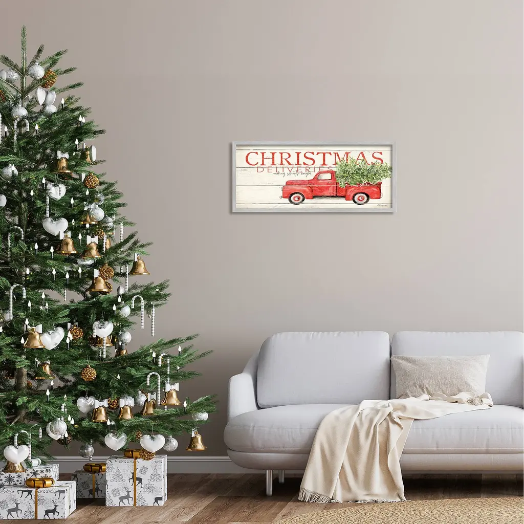 Add dimension to any room with our textured Framed Giclee Artwork. Our framed artwork is securely mounted into a 1.5-inch thick wood grain frame and ready to hang. Frames are available in three alluring styles: black, gray farmhouse and white. In addition, you should check out our oversized options if you want a statement piece. Stupell Wall Art is made in the USA.Features: Dimensions: 24 x 1.5 x 10 FramedFramed Giclee Sizes Include Standard: 24 x 1.5 x 10 Oversized: 30 x 1.5 x 13Wall Art is Ready to Hang - No Installation or Hardware Needed. For Easy Set Up Lean or Layer Artwork on Shelf or Against Wall.Our giclée prints are carefully mounted on a durable MDF backing, and then perfectly finished in a 1.5 inch thick woodgrain frame. Mounted frame colors include black, gray farmhouse and white. Made In USA.Artwork Relates To: Holiday, Christmas, Rustic, Truck, Christmas Tree, Christmas DeliveriesDesign by Stephanie Workman Marrott