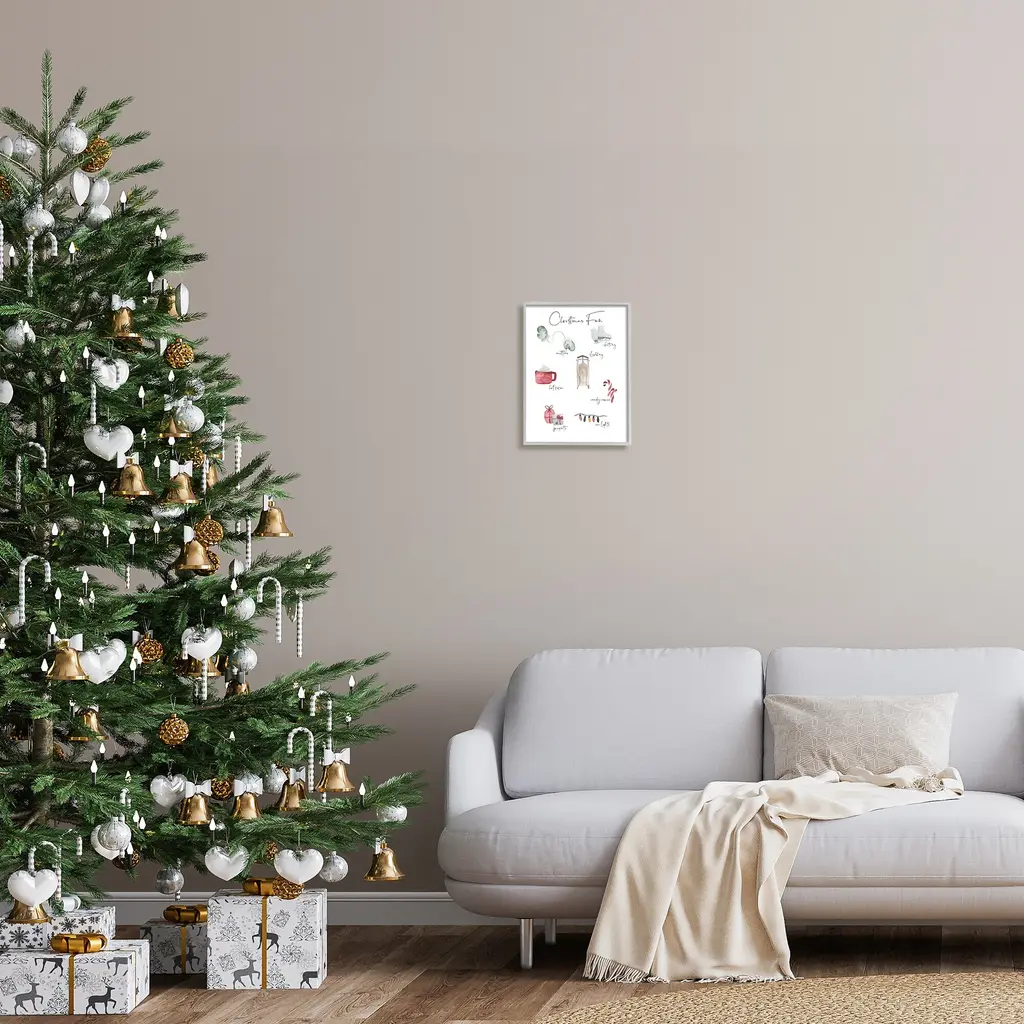Stupell Christmas Fun Illustrated Item List Festive Holiday Traditions Framed Wall Art - 11 X 14 - Grey