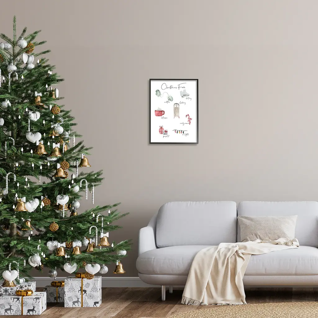 Stupell Christmas Fun Illustrated Item List Festive Holiday Traditions Framed Wall Art - 16 X 20 - Black