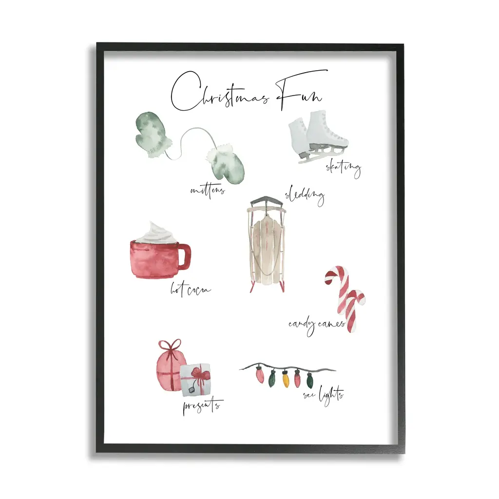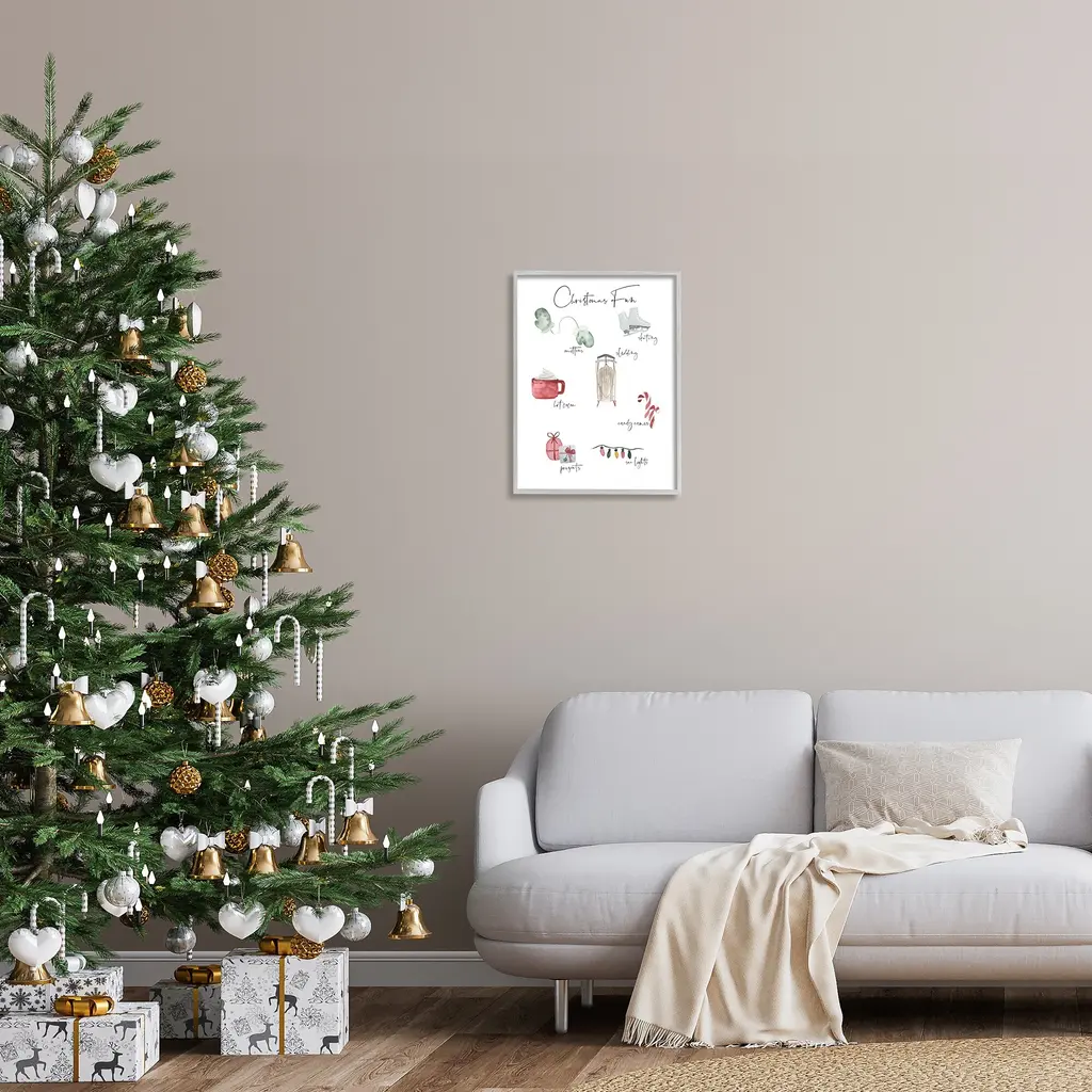 Stupell Christmas Fun Illustrated Item List Festive Holiday Traditions Framed Wall Art - 16 X 20 - Grey