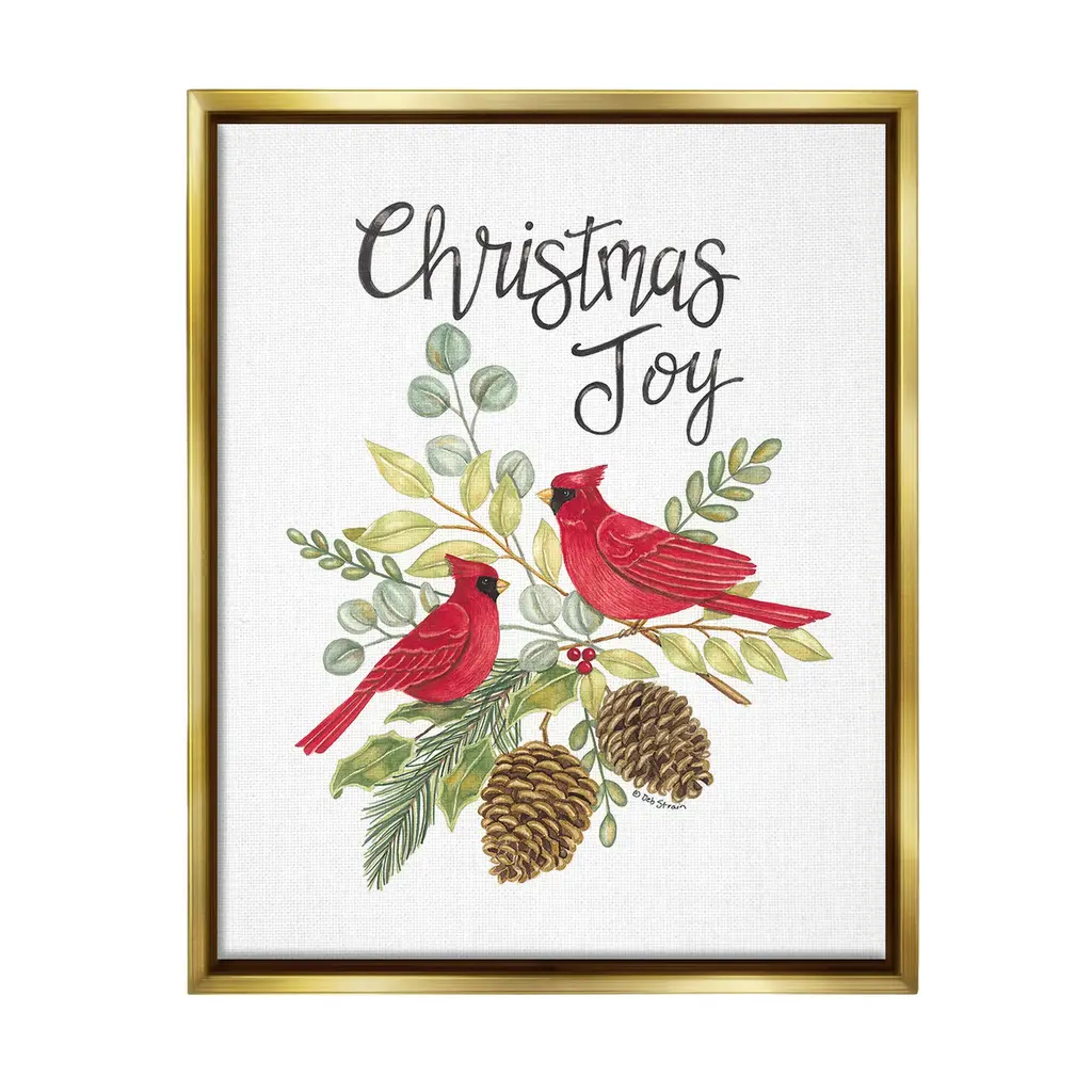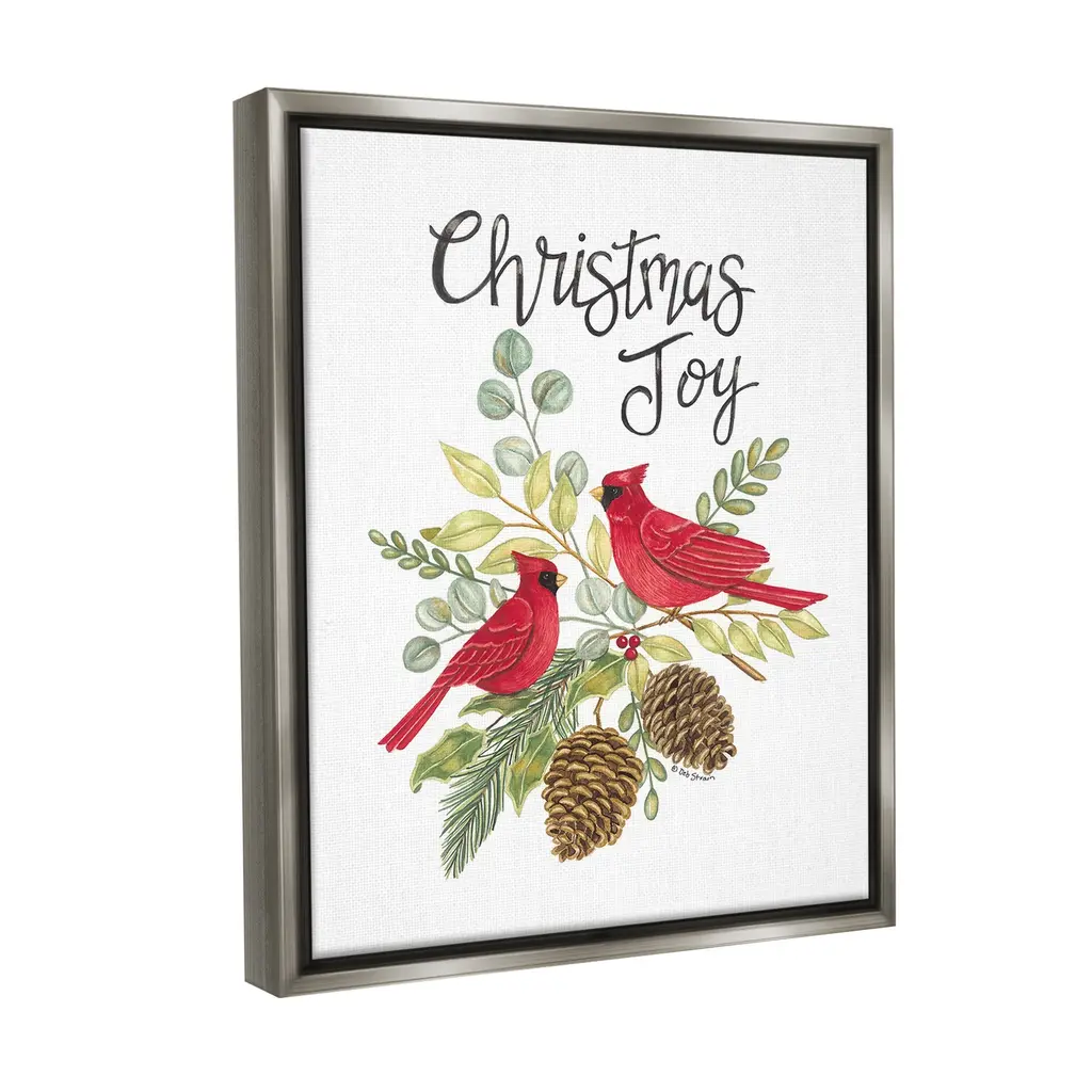 Elevate your home or office to the next level with Stupell Framed Floating Canvas Wall Art. Our premium hand-stretched canvas is mounted securely into a sturdy lightweight frame. The museum-style gap between the wrapped canvas and the box frame gives the illusion of floating artwork. Stupell Wall Art is made in the USA.Features: Dimensions: 17 x 1.7 x 21 Frame, 16 x 1.5 x 20 Canvas ArtFloating Frame Canvas Products are available in sizes 17"x21" and 25"x31". All Floating Frame Canvas Products have a 1.7" Depth.Wall Art is Ready to Hang with Hardware Free Hanging. No Installation required. For Easy Set Up Lean or Layer Artwork on Shelf or Against Wall. Artwork is Permently Fixed into the Frame.Our elevated 1.7" Thick Floating Frame is the perfect complement to our canvas style Wall Art. We use only the highest quality inks in house with industry leading printing solutions. Canvas is hand stretched over a durable wood foundation and then mounted securly into a Modern Box Frame. Made in the USA.Artwork Relates To: Animal, Bird, Cardinal, Pinecone, Botanical, Leaf, Holiday, Winter, Christmas, Christmas JoyDesign by Deb Strain