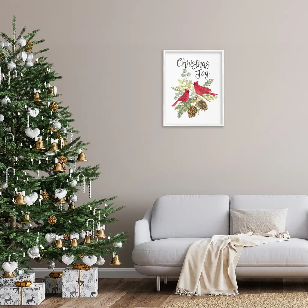 Add dimension to any room with our textured Framed Giclee Artwork. Our framed artwork is securely mounted into a 1.5-inch thick wood grain frame and ready to hang. Frames are available in three alluring styles: black, gray farmhouse and white. In addition, you should check out our oversized options if you want a statement piece. Stupell Wall Art is made in the USA.Features: Dimensions: 11 x 1.5 x 14 FramedFramed Giclee Products are available in the sizes 11"x14", 16"x20" or 24"x30". All Framed Giclee Products have a 1.5" Depth. Wall Art is Ready to Hang with Hardware Free Hanging. No installation required. For Easy Set Up Lean or Layer Artwork on Shelf or Against Wall.Our giclée prints are carefully mounted on a durable MDF backing, and then perfectly finished in a 1.5 inch thick woodgrain frame. Mounted frame colors include black, gray farmhouse and white. Made In USA.Artwork Relates To: Animal, Bird, Cardinal, Pinecone, Botanical, Leaf, Holiday, Winter, Christmas, Christmas JoyDesign by Deb Strain