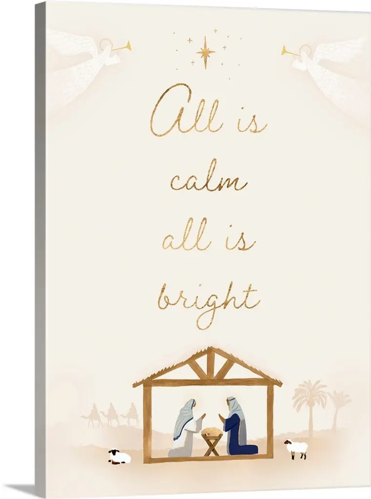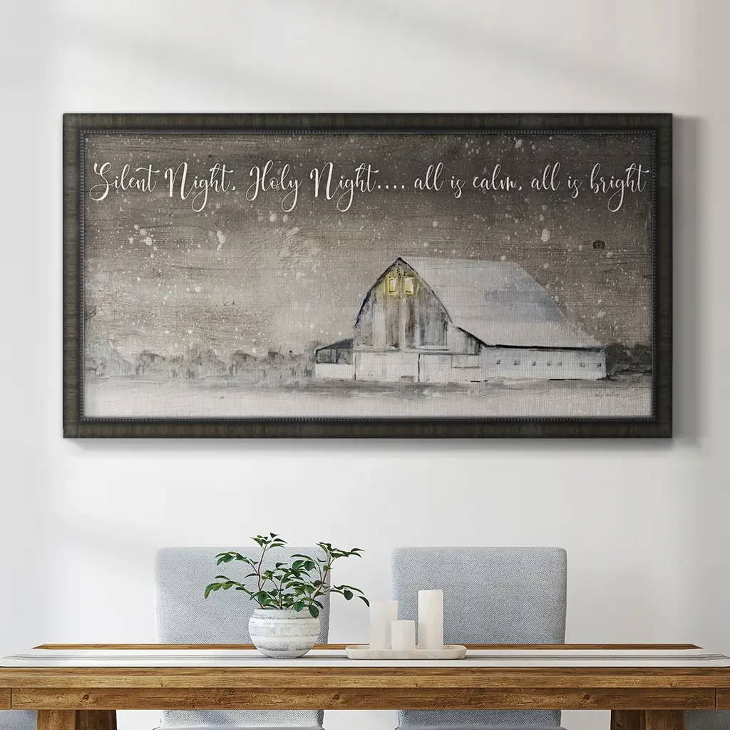 Stupell Christmas Silent Night Script Winter Bird Illustration Canvas Wall Art - 30 X 40