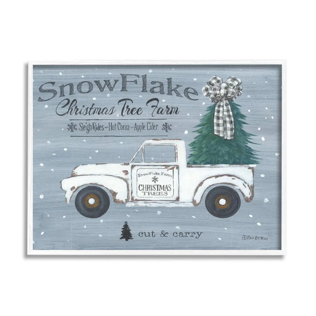 Stupell Christmas Tree Farm Rustic Weathered Truck Sign Framed Wall Art - Green - 30 X 24 - Grey