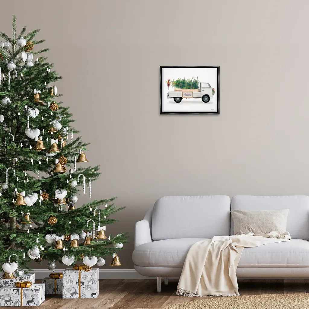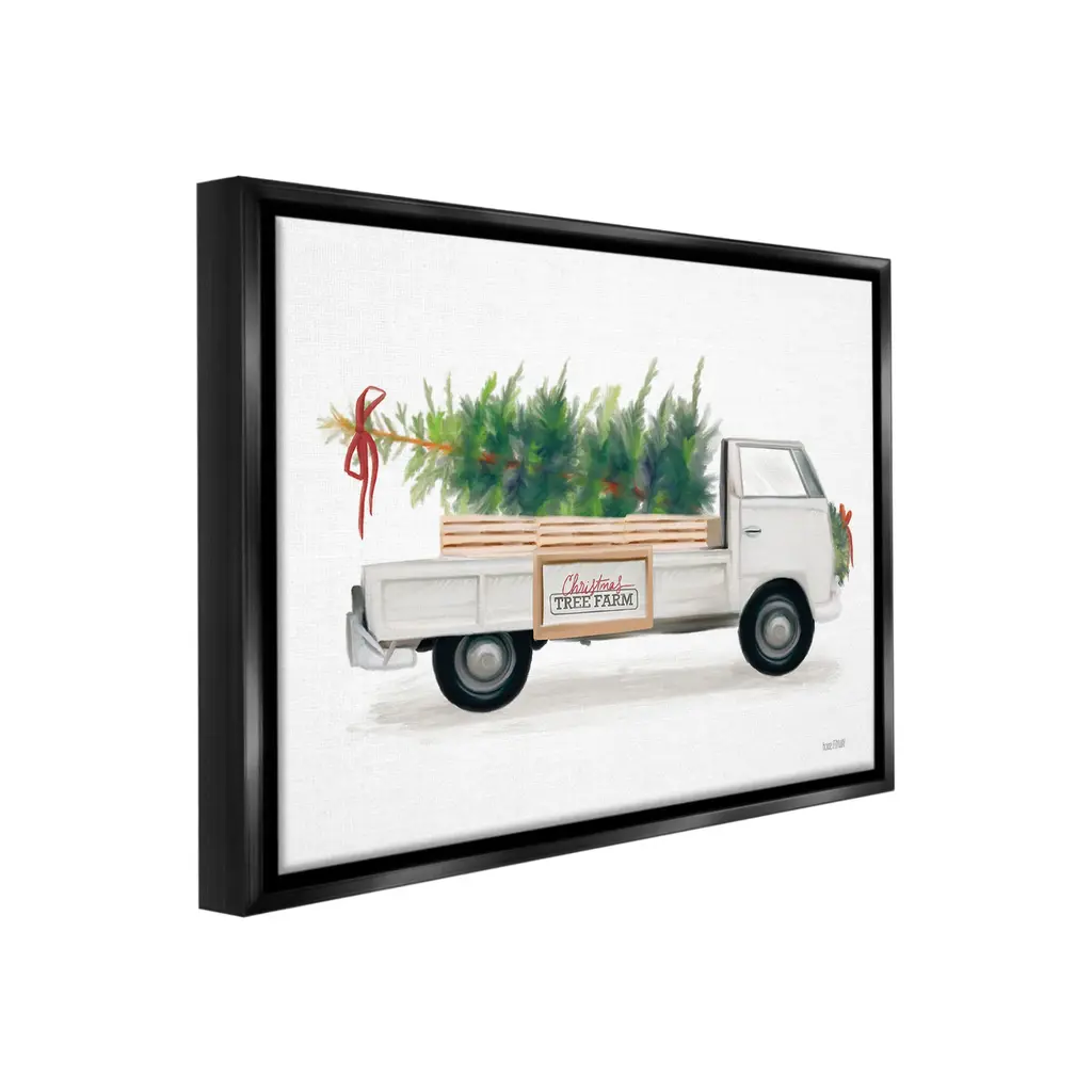 Elevate your home or office to the next level with Stupell Framed Floating Canvas Wall Art. Our premium hand-stretched canvas is mounted securely into a sturdy lightweight frame. The museum-style gap between the wrapped canvas and the box frame gives the illusion of floating artwork. Stupell Wall Art is made in the USA.Features: Dimensions: 21 x 1.7 x 17 Frame, 20 x 1.5 x 16 Canvas ArtFloating Frame Canvas Products are available in sizes 21"x17" and 31"x25". All Floating Frame Canvas Products have a 1.7" Depth.Wall Art is Ready to Hang with Hardware Free Hanging. No Installation required. For Easy Set Up Lean or Layer Artwork on Shelf or Against Wall. Artwork is Permently Fixed into the Frame.Our elevated 1.7" Thick Floating Frame is the perfect complement to our canvas style Wall Art. We use only the highest quality inks in house with industry leading printing solutions. Canvas is hand stretched over a durable wood foundation and then mounted securly into a Modern Box Frame. Made in the USA.Artwork Relates To: Pickup Truck, Vehicle, Plant, Tree, Christmas, Winter, Farmhouse, Christmas Tree FarmDesign by House Fenway
