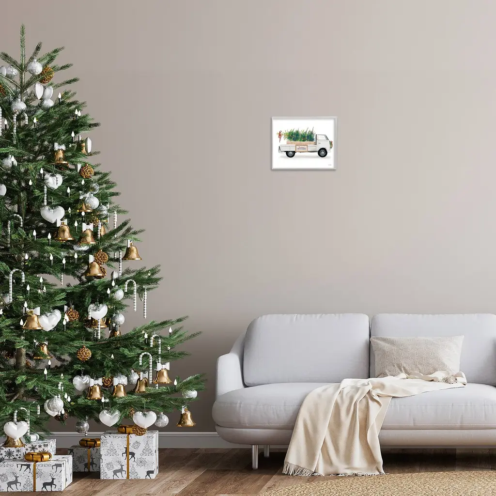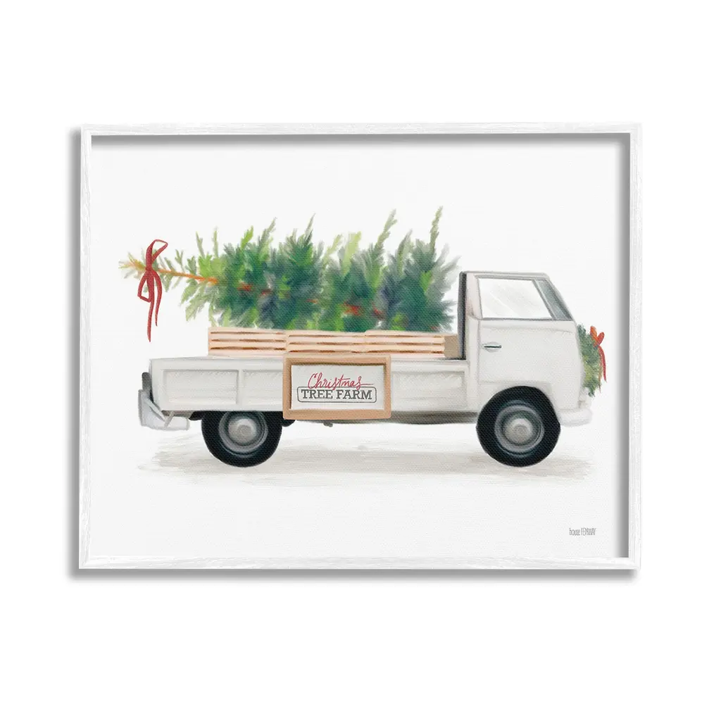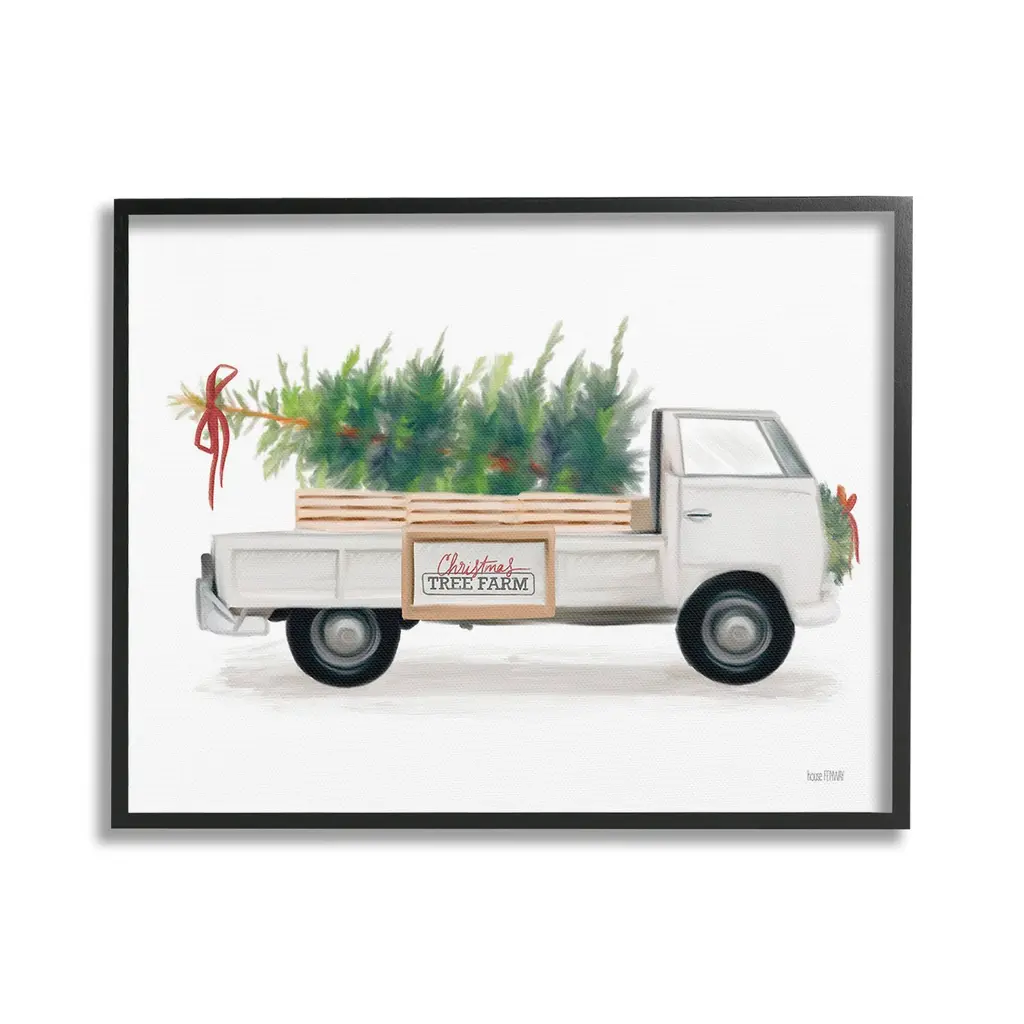 Add dimension to any room with our textured Framed Giclee Artwork. Our framed artwork is securely mounted into a 1.5-inch thick wood grain frame and ready to hang. Frames are available in three alluring styles: black, gray farmhouse and white. In addition, you should check out our oversized options if you want a statement piece. Stupell Wall Art is made in the USA.Features: Dimensions: 14 x 1.5 x 11 FramedFramed Giclee Products are available in the sizes 14"x11", 20"x16" or 30"x24". All Framed Giclee Products have a 1.5" Depth. Wall Art is Ready to Hang with Hardware Free Hanging. No installation required. For Easy Set Up Lean or Layer Artwork on Shelf or Against Wall.Our giclée prints are carefully mounted on a durable MDF backing, and then perfectly finished in a 1.5 inch thick woodgrain frame. Mounted frame colors include black, gray farmhouse and white. Made In USA.Artwork Relates To: Pickup Truck, Vehicle, Plant, Tree, Christmas, Winter, Farmhouse, Christmas Tree FarmDesign by House Fenway