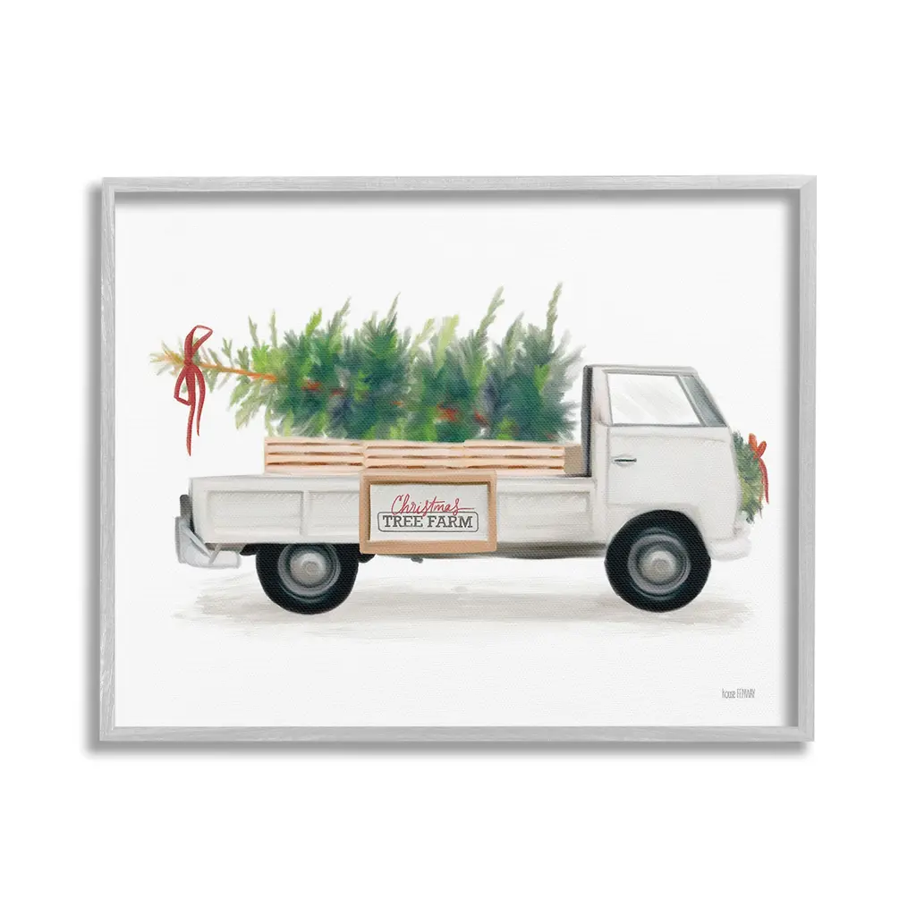 Add dimension to any room with our textured Framed Giclee Artwork. Our framed artwork is securely mounted into a 1.5-inch thick wood grain frame and ready to hang. Frames are available in three alluring styles: black, gray farmhouse and white. In addition, you should check out our oversized options if you want a statement piece. Stupell Wall Art is made in the USA.Features: Dimensions: 14 x 1.5 x 11 FramedFramed Giclee Products are available in the sizes 14"x11", 20"x16" or 30"x24". All Framed Giclee Products have a 1.5" Depth. Wall Art is Ready to Hang with Hardware Free Hanging. No installation required. For Easy Set Up Lean or Layer Artwork on Shelf or Against Wall.Our giclée prints are carefully mounted on a durable MDF backing, and then perfectly finished in a 1.5 inch thick woodgrain frame. Mounted frame colors include black, gray farmhouse and white. Made In USA.Artwork Relates To: Pickup Truck, Vehicle, Plant, Tree, Christmas, Winter, Farmhouse, Christmas Tree FarmDesign by House Fenway