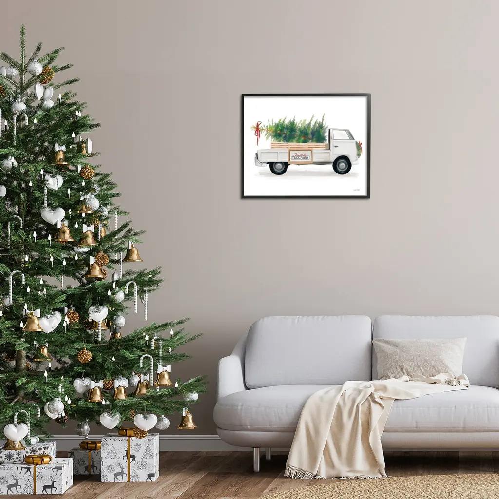 Add dimension to any room with our textured Framed Giclee Artwork. Our framed artwork is securely mounted into a 1.5-inch thick wood grain frame and ready to hang. Frames are available in three alluring styles: black, gray farmhouse and white. In addition, you should check out our oversized options if you want a statement piece. Stupell Wall Art is made in the USA.Features: Dimensions: 14 x 1.5 x 11 FramedFramed Giclee Products are available in the sizes 14"x11", 20"x16" or 30"x24". All Framed Giclee Products have a 1.5" Depth. Wall Art is Ready to Hang with Hardware Free Hanging. No installation required. For Easy Set Up Lean or Layer Artwork on Shelf or Against Wall.Our giclée prints are carefully mounted on a durable MDF backing, and then perfectly finished in a 1.5 inch thick woodgrain frame. Mounted frame colors include black, gray farmhouse and white. Made In USA.Artwork Relates To: Pickup Truck, Vehicle, Plant, Tree, Christmas, Winter, Farmhouse, Christmas Tree FarmDesign by House Fenway