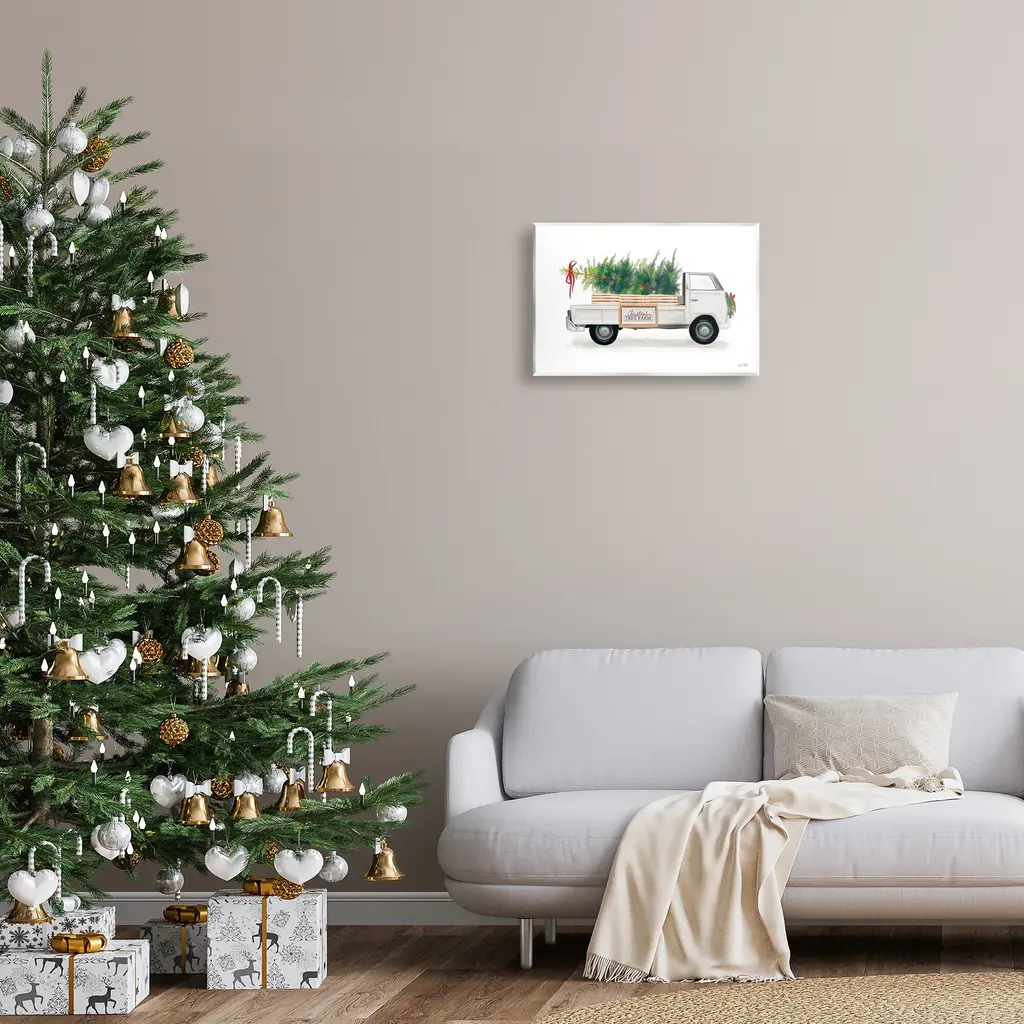Our wall plaques start as high-quality lithograph prints mounted on durable 0.5-inch thick MDF wood. Each piece is hand finished and comes with a fresh layer of white foil on the sides to give it a crisp, clean look. Plaques arrive ready to hang without installation and come with removable plastic corners to keep them from damage in transit. Stupell Wall Art is made in the USA.Features: Dimensions: 15 x 0.5 x 10 InchesWall Plaque Product Sizes Include 15"x10" and 19"x13". All wall plaque products have a 0.5" Depth. Wall Art is Ready to Hang with Hardware Free Hanging. No installation required. For Easy Set Up Lean or Layer Artwork on Shelf or Against Wall.All of our wall plaques start off as high quality lithograph prints that are then mounted on durable 0.5 inch thick MDF wood. Each piece is hand finished and comes with a fresh layer of foil on the sides to give it a crisp clean look. Made In USA.Artwork Relates To: Pickup Truck, Vehicle, Plant, Tree, Christmas, Winter, Farmhouse, Christmas Tree FarmDesign by House Fenway