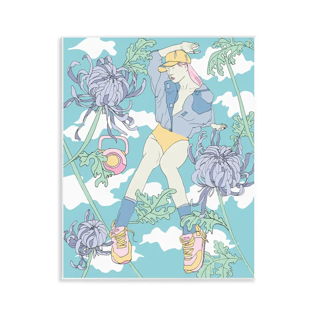 Our wall plaques start as high-quality lithograph prints mounted on durable 0.5-inch thick MDF wood. Each piece is hand finished and comes with a fresh layer of white foil on the sides to give it a crisp, clean look. Plaques arrive ready to hang without installation and come with removable plastic corners to keep them from damage in transit. Stupell Wall Art is made in the USA.Features: Dimensions: 11 x 0.5 x 14 InchesWall Art is Ready to Hang with Hardware Free Hanging. No installation required. For Easy Set Up Lean or Layer Artwork on Shelf or Against Wall.All of our wall plaques start off as high quality lithograph prints that are then mounted on durable 0.5 inch thick MDF wood. Each piece is hand finished and comes with a fresh layer of foil on the sides to give it a crisp clean look. Made In USA.Artwork Relates To: Person, Woman, Workout, Exercise, Cloud, Flower, ChrysanthemumDesign by Melissa Wang
