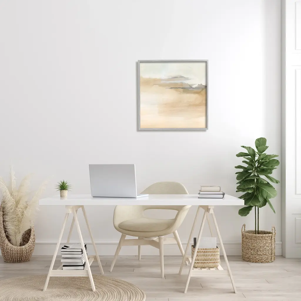 Stupell Cinnamon Shores Abstract Landscape Soft Neutral Tones Framed Wall Art - Tan - 24 X 24 - Grey