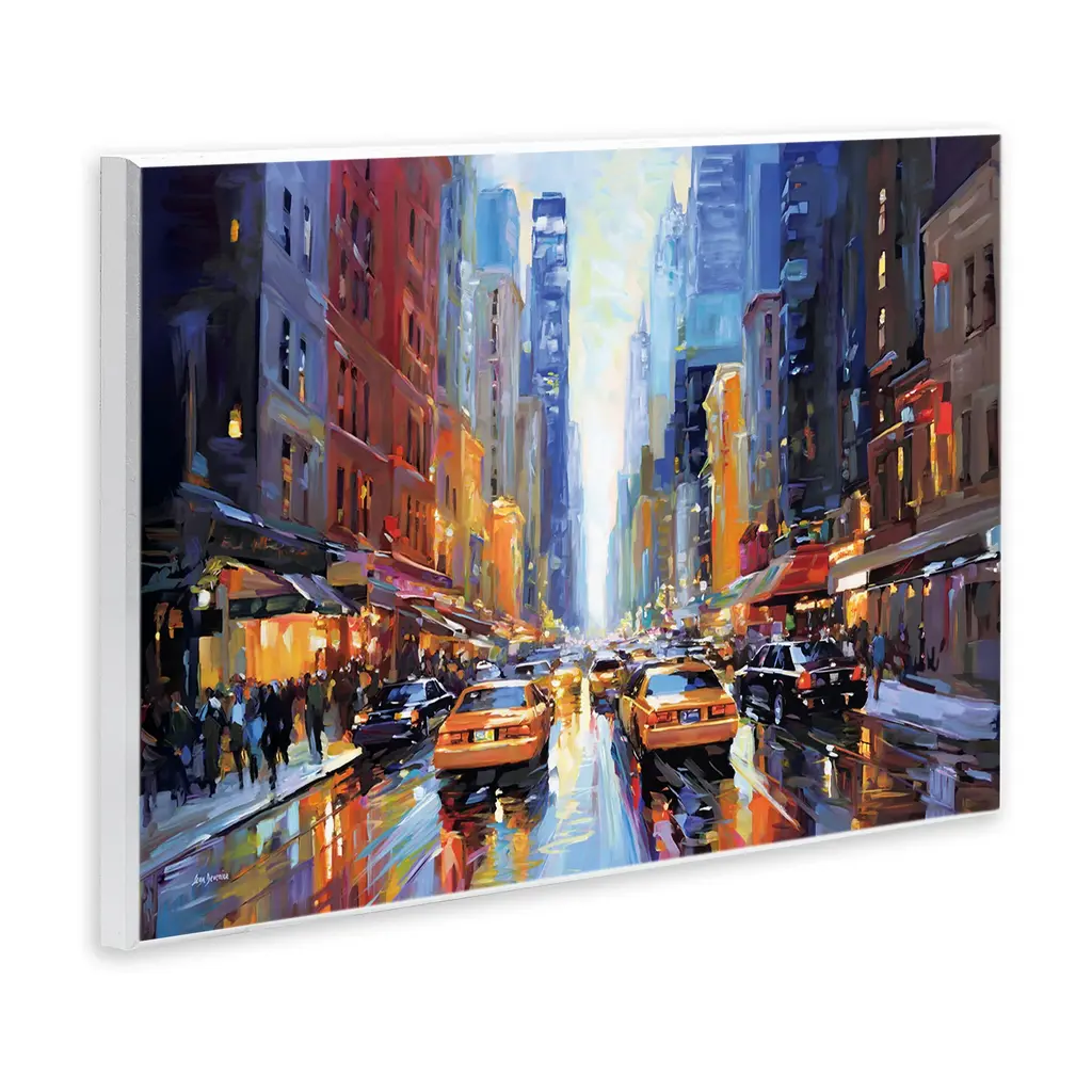 Our wall plaques start as high-quality lithograph prints mounted on durable 0.5-inch thick MDF wood. Each piece is hand finished and comes with a fresh layer of white foil on the sides to give it a crisp, clean look. Plaques arrive ready to hang without installation and come with removable plastic corners to keep them from damage in transit. Stupell Wall Art is made in the USA.Features: Dimensions: 15 x 0.5 x 10 InchesWall Plaque Product Sizes Include 15"x10" and 19"x13". All wall plaque products have a 0.5" Depth. Wall Art is Ready to Hang with Hardware Free Hanging. No installation required. For Easy Set Up Lean or Layer Artwork on Shelf or Against Wall.All of our wall plaques start off as high quality lithograph prints that are then mounted on durable 0.5 inch thick MDF wood. Each piece is hand finished and comes with a fresh layer of foil on the sides to give it a crisp clean look. Made In USA.Artwork Relates To: Cityscape, City, Building, Car, Taxi, PeopleDesign by Leon Devenice