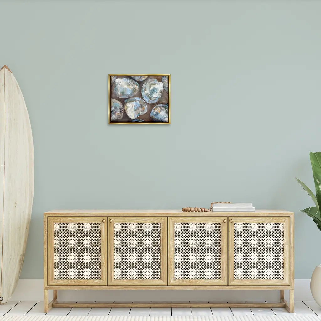 Elevate your home or office to the next level with Stupell Framed Floating Canvas Wall Art. Our premium hand-stretched canvas is mounted securely into a sturdy lightweight frame. The museum-style gap between the wrapped canvas and the box frame gives the illusion of floating artwork. Stupell Wall Art is made in the USA.Features: Dimensions: 21 x 1.7 x 17 Frame, 20 x 1.5 x 16 Canvas ArtFloating Frame Canvas Products are available in sizes 21"x17" and 31"x25". All Floating Frame Canvas Products have a 1.7" Depth.Wall Art is Ready to Hang with Hardware Free Hanging. No Installation required. For Easy Set Up Lean or Layer Artwork on Shelf or Against Wall. Artwork is Permently Fixed into the Frame.Our elevated 1.7" Thick Floating Frame is the perfect complement to our canvas style Wall Art. We use only the highest quality inks in house with industry leading printing solutions. Canvas is hand stretched over a durable wood foundation and then mounted securly into a Modern Box Frame. Made in the USA.Artwork Relates To: Animal, Clam, Food, Invertebrate, Sea Life, Seafood, Seashell, NauticalDesign by Jeanette Vertentes