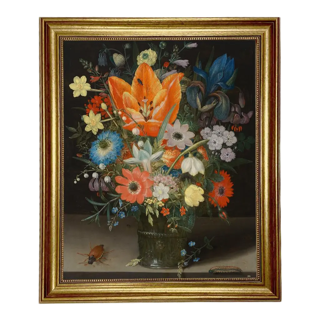 Stupell Classic Bouquet Still Life Framed Floater Canvas Wall Art Design By Stellar Design Studio - 17 X 21 - Gold
