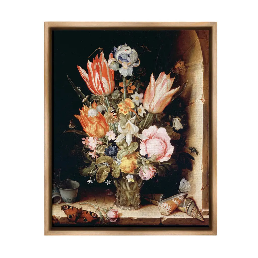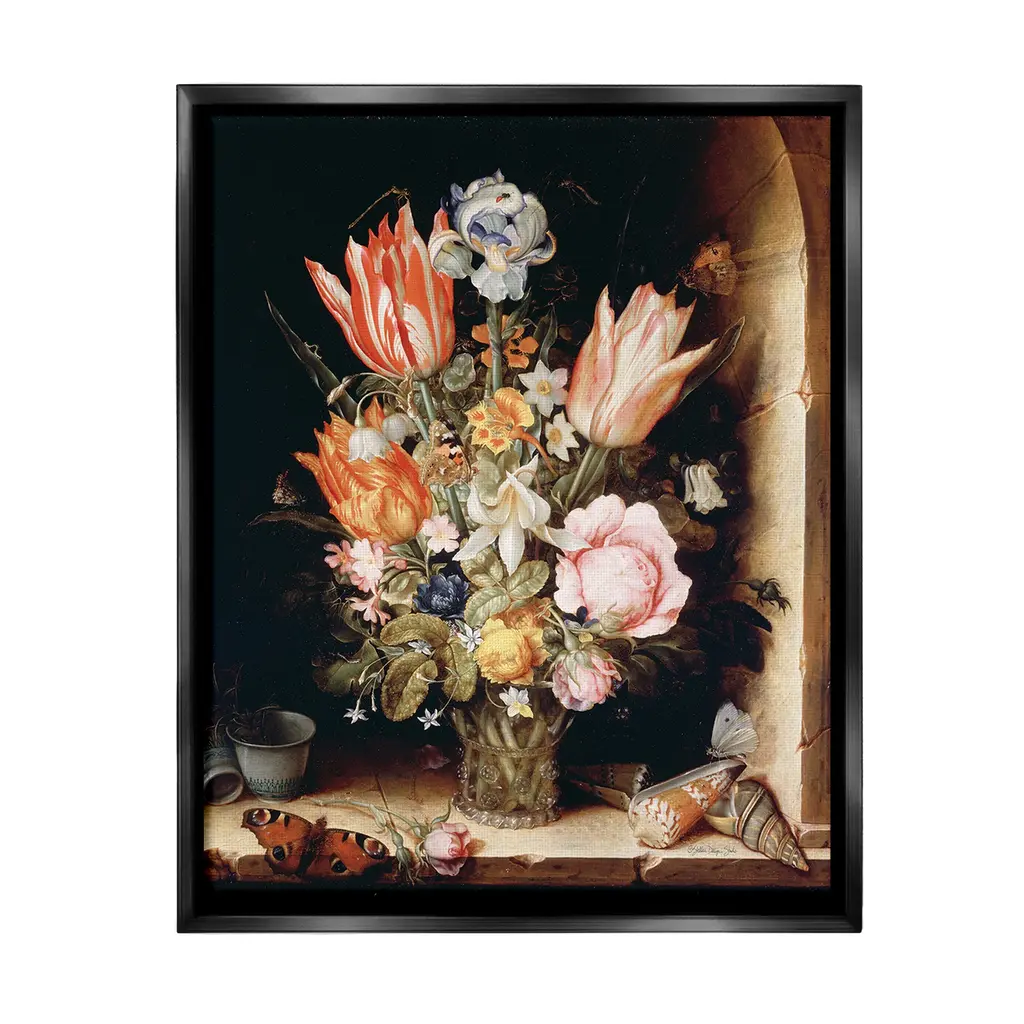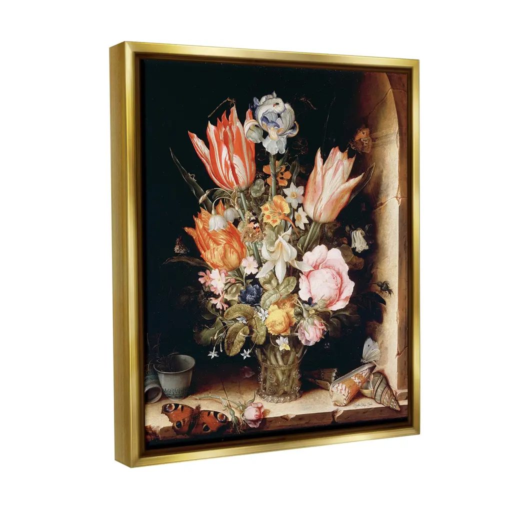 Elevate your home or office to the next level with Stupell Framed Floating Canvas Wall Art. Our premium hand-stretched canvas is mounted securely into a sturdy lightweight frame. The museum-style gap between the wrapped canvas and the box frame gives the illusion of floating artwork. Stupell Wall Art is made in the USA.Features: Dimensions: 17 x 1.7 x 21 Frame, 16 x 1.5 x 20 Canvas ArtFloating Frame Canvas Products are available in sizes 17"x21" and 25"x31". All Floating Frame Canvas Products have a 1.7" Depth.Wall Art is Ready to Hang with Hardware Free Hanging. No Installation required. For Easy Set Up Lean or Layer Artwork on Shelf or Against Wall. Artwork is Permently Fixed into the Frame.Our elevated 1.7" Thick Floating Frame is the perfect complement to our canvas style Wall Art. We use only the highest quality inks in house with industry leading printing solutions. Canvas is hand stretched over a durable wood foundation and then mounted securly into a Modern Box Frame. Made in the USA.Artwork Relates To: Flower, Bouquet, Plant, Floral, Jar, Dahlia, Petal, Vintage, Traditional, Seashell, Butterfly, Still Life, Classic, TulipDesign by Stellar Design Studio