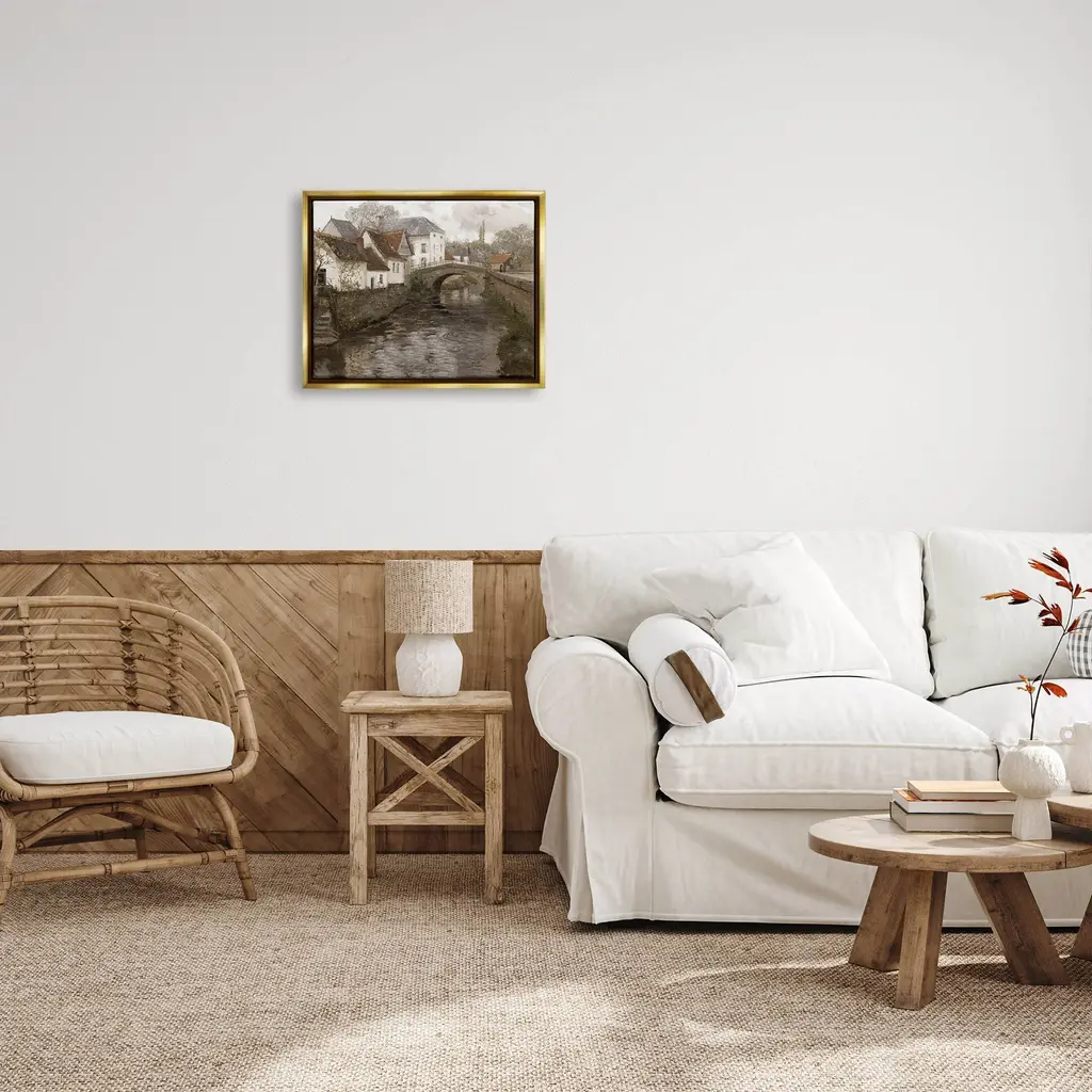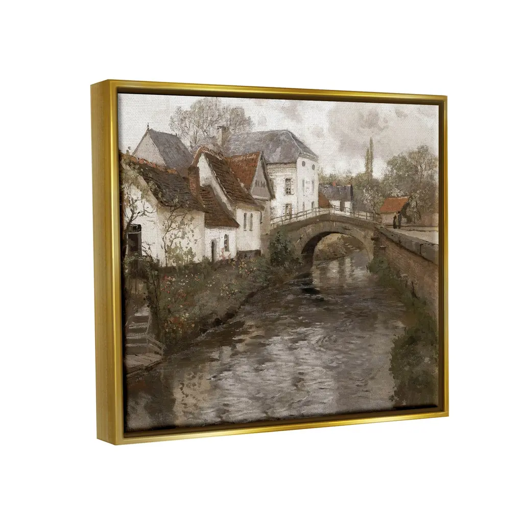 Elevate your home or office to the next level with Stupell Framed Floating Canvas Wall Art. Our premium hand stretched canvas is mounted securly into a sturdy lightweight frame. The museum style gap between wrapped canvas and box frame gives the illusion of floating artwork. Features: Dimensions: 21 x 1.7 x 17 Frame, 20 x 1.5 x 16 Canvas ArtFloating Frame Sizes Include Standard: 21 x 1.7 x 17 Oversized: 31 x 1.7 x 25Wall Art is Ready to Hang - No Installation or Hardware Needed. For Easy Set Up Lean or Layer Artwork on Shelf or Against Wall.Our elevated 1.7" Thick Floating Frame is the perfect complement to our canvas style Wall Art. We use only the highest quality inks in house with industry leading printing solutions. Canvas is hand stretched over a durable wood foundation and then mounted securly into a Modern Box Frame. Made in the USA.Artwork Relates To: Painting, Canal, Water, Outdoors, Arch, Architecture, Housing, Building, Street, City, Road, Nature, NeighborhoodDesign by Lettered and Lined