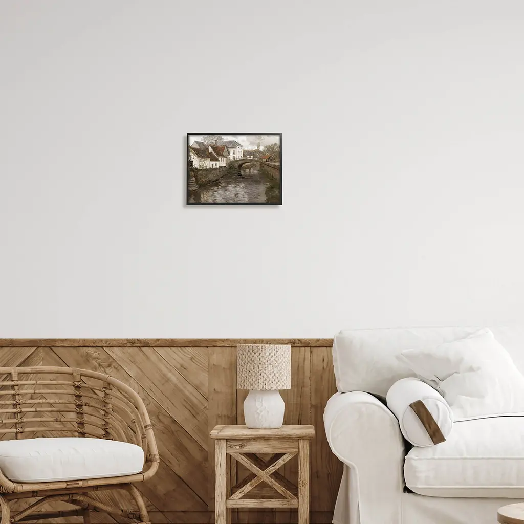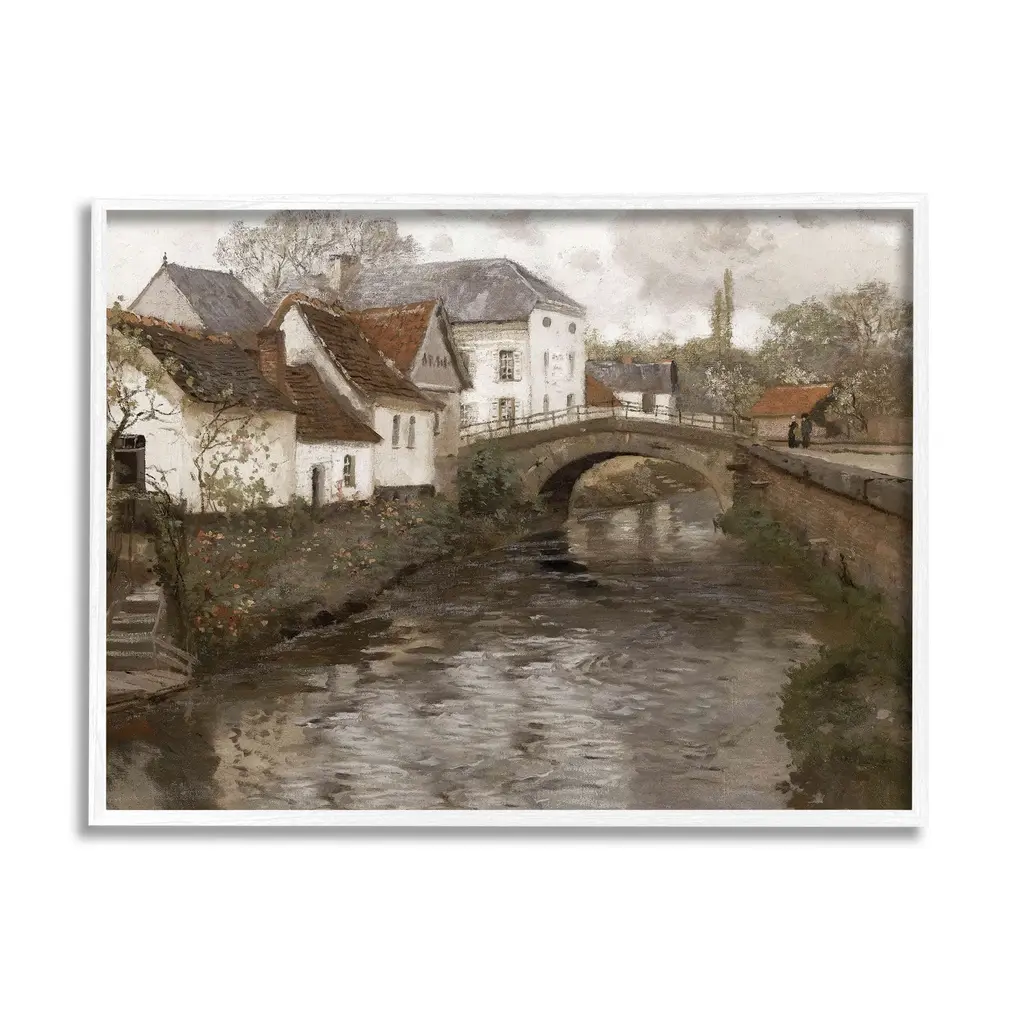 Our Framed Giclee Wall Art adds a touch of class to any space in your home or office. Frames are available in three alluring styles: black, gray farmhouse and white. Our textured artwork will add more depth and dimension to any space. Each piece is mounted with a 1.5 inch thick wood grain frame that is ready to hang! Looking for a statement piece? We have oversized artwork available.Features: Dimensions: 14 x 1.5 x 11 FramedFramed Giclee Sizes Include Standard: 14 x 1.5 x 11 Large: 20 x 1.5 x 16 Oversized: 30 x 1.5 x 24Wall Art is Ready to Hang - No Installation or Hardware Needed. For Easy Set Up Lean or Layer Artwork on Shelf or Against Wall.Our giclée prints are carefully mounted on a durable MDF backing, and then perfectly finished in a 1.5 inch thick woodgrain frame. Mounted frame colors include black, gray farmhouse and white. Made In USA.Artwork Relates To: Painting, Canal, Water, Outdoors, Arch, Architecture, Housing, Building, Street, City, Road, Nature, NeighborhoodDesign by Lettered and Lined