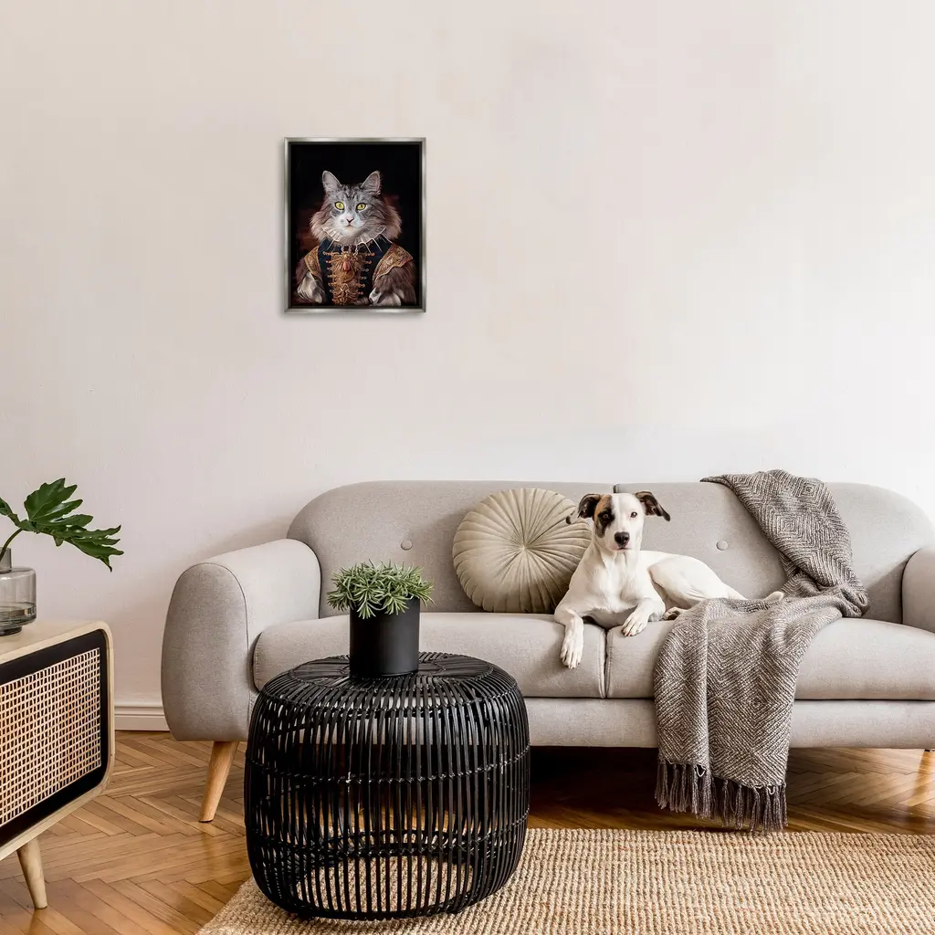 Elevate your home or office to the next level with Stupell Framed Floating Canvas Wall Art. Our premium hand-stretched canvas is mounted securely into a sturdy lightweight frame. The museum-style gap between the wrapped canvas and the box frame gives the illusion of floating artwork. Stupell Wall Art is made in the USA.Features: Dimensions: 17 x 1.7 x 21 Frame, 16 x 1.5 x 20 Canvas ArtFloating Frame Canvas Products are available in sizes 17"x21" and 25"x31". All Floating Frame Canvas Products have a 1.7" Depth.Wall Art is Ready to Hang with Hardware Free Hanging. No Installation required. For Easy Set Up Lean or Layer Artwork on Shelf or Against Wall. Artwork is Permently Fixed into the Frame.Our elevated 1.7" Thick Floating Frame is the perfect complement to our canvas style Wall Art. We use only the highest quality inks in house with industry leading printing solutions. Canvas is hand stretched over a durable wood foundation and then mounted securly into a Modern Box Frame. Made in the USA.Artwork Relates To: Angora, Animal, Cat, Mammal, Pet, Portrait, Classic, Humor, FunnyDesign by Karen Burke