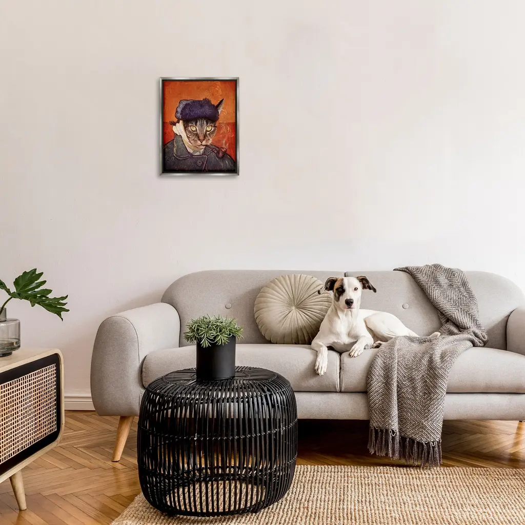 Elevate your home or office to the next level with Stupell Framed Floating Canvas Wall Art. Our premium hand-stretched canvas is mounted securely into a sturdy lightweight frame. The museum-style gap between the wrapped canvas and the box frame gives the illusion of floating artwork. Stupell Wall Art is made in the USA.Features: Dimensions: 17 x 1.7 x 21 Frame, 16 x 1.5 x 20 Canvas ArtFloating Frame Canvas Products are available in sizes 17"x21" and 25"x31". All Floating Frame Canvas Products have a 1.7" Depth.Wall Art is Ready to Hang with Hardware Free Hanging. No Installation required. For Easy Set Up Lean or Layer Artwork on Shelf or Against Wall. Artwork is Permently Fixed into the Frame.Our elevated 1.7" Thick Floating Frame is the perfect complement to our canvas style Wall Art. We use only the highest quality inks in house with industry leading printing solutions. Canvas is hand stretched over a durable wood foundation and then mounted securly into a Modern Box Frame. Made in the USA.Artwork Relates To: Arch, Animal, Cat, Mammal, Pet, Classic, Humor, Funny, PortraitDesign by Karen Burke