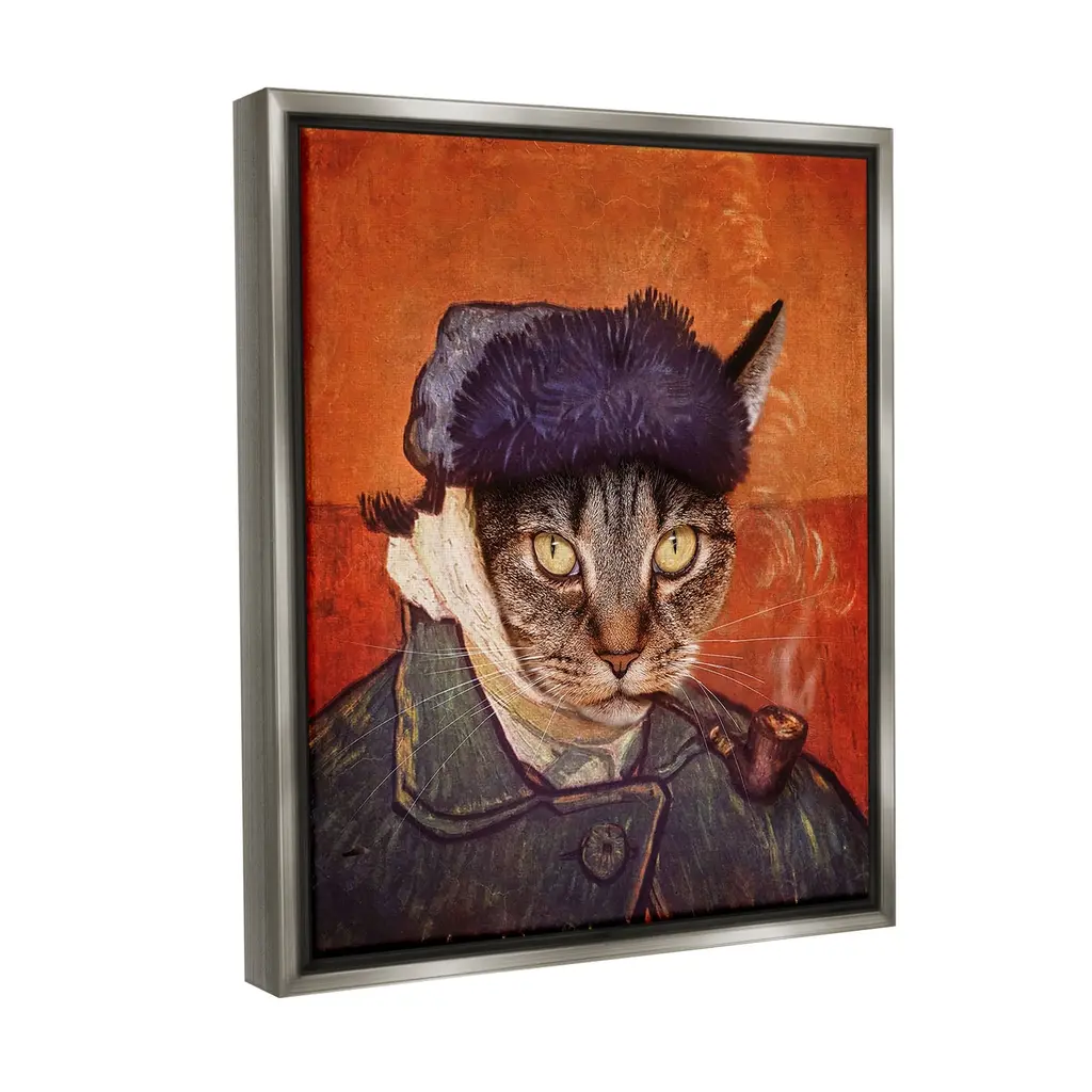 Elevate your home or office to the next level with Stupell Framed Floating Canvas Wall Art. Our premium hand-stretched canvas is mounted securely into a sturdy lightweight frame. The museum-style gap between the wrapped canvas and the box frame gives the illusion of floating artwork. Stupell Wall Art is made in the USA.Features: Dimensions: 17 x 1.7 x 21 Frame, 16 x 1.5 x 20 Canvas ArtFloating Frame Canvas Products are available in sizes 17"x21" and 25"x31". All Floating Frame Canvas Products have a 1.7" Depth.Wall Art is Ready to Hang with Hardware Free Hanging. No Installation required. For Easy Set Up Lean or Layer Artwork on Shelf or Against Wall. Artwork is Permently Fixed into the Frame.Our elevated 1.7" Thick Floating Frame is the perfect complement to our canvas style Wall Art. We use only the highest quality inks in house with industry leading printing solutions. Canvas is hand stretched over a durable wood foundation and then mounted securly into a Modern Box Frame. Made in the USA.Artwork Relates To: Arch, Animal, Cat, Mammal, Pet, Classic, Humor, Funny, PortraitDesign by Karen Burke