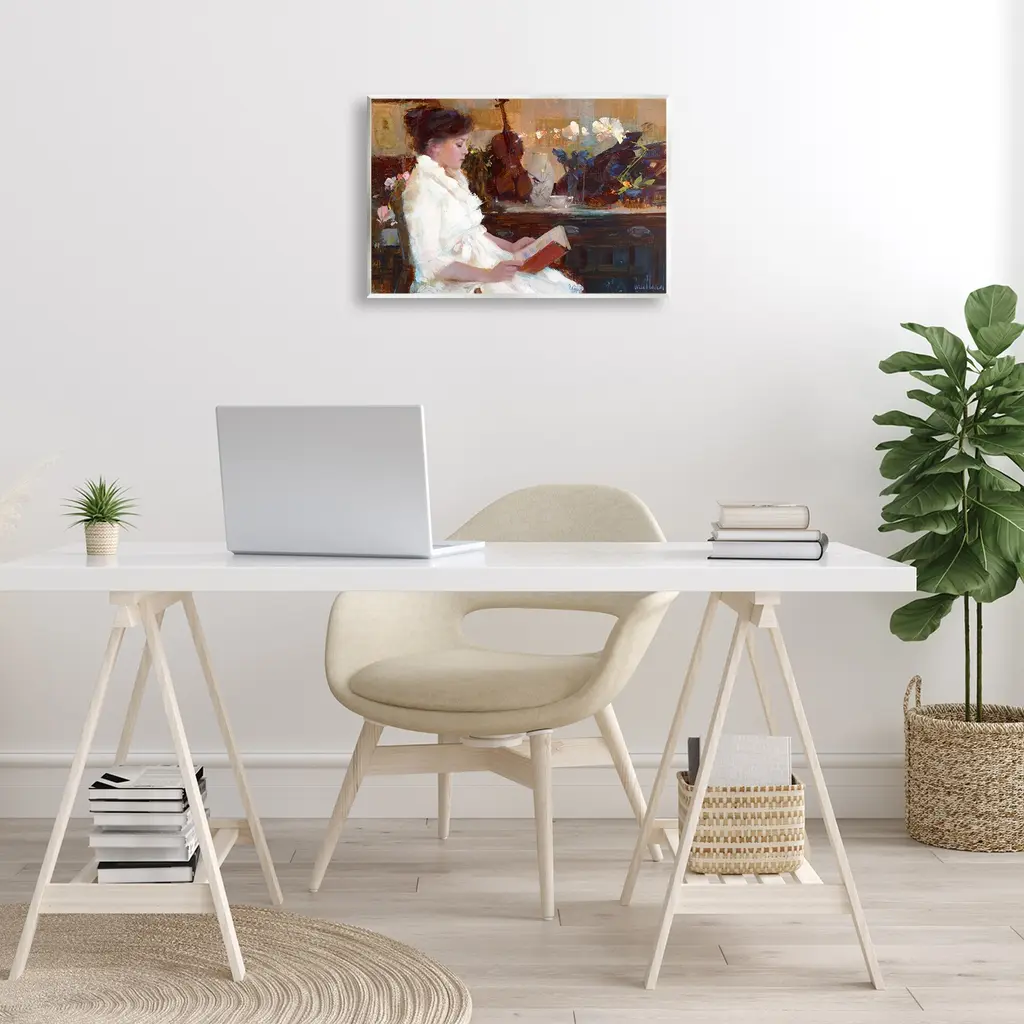 Our wall plaques start as high-quality lithograph prints mounted on durable 0.5-inch thick MDF wood. Each piece is hand finished and comes with a fresh layer of white foil on the sides to give it a crisp, clean look. Plaques arrive ready to hang without installation and come with removable plastic corners to keep them from damage in transit. Stupell Wall Art is made in the USA.Features: Dimensions: 15 x 0.5 x 10 InchesWall Plaque Product Sizes Include 15"x10" and 19"x13". All wall plaque products have a 0.5" Depth. Wall Art is Ready to Hang with Hardware Free Hanging. No installation required. For Easy Set Up Lean or Layer Artwork on Shelf or Against Wall.All of our wall plaques start off as high quality lithograph prints that are then mounted on durable 0.5 inch thick MDF wood. Each piece is hand finished and comes with a fresh layer of foil on the sides to give it a crisp clean look. Made In USA.Artwork Relates To: Painting,, Female, Person, Woman, Instrument, Music, Book, ReadingDesign by Katie Swatland
