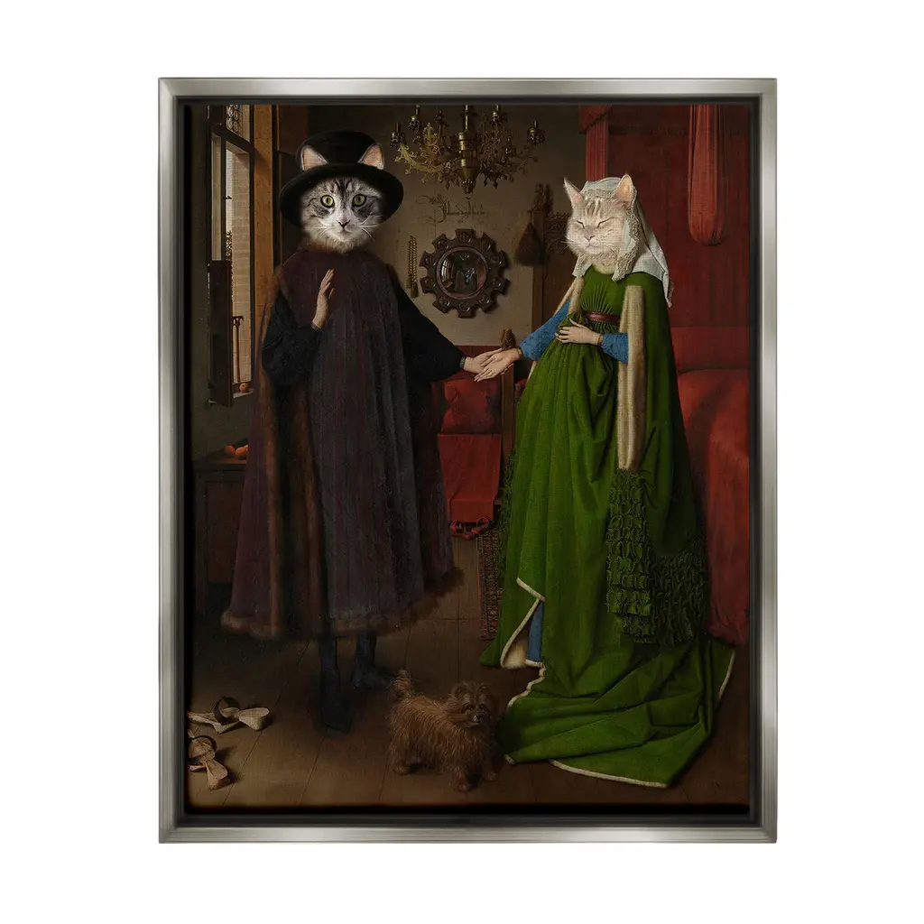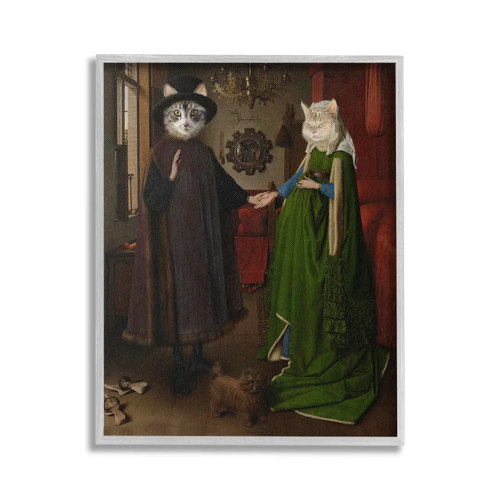Stupell Classic Painting With Cats Framed Floater Canvas Wall Art Design By Karen Burke - 17 X 21 - Brown