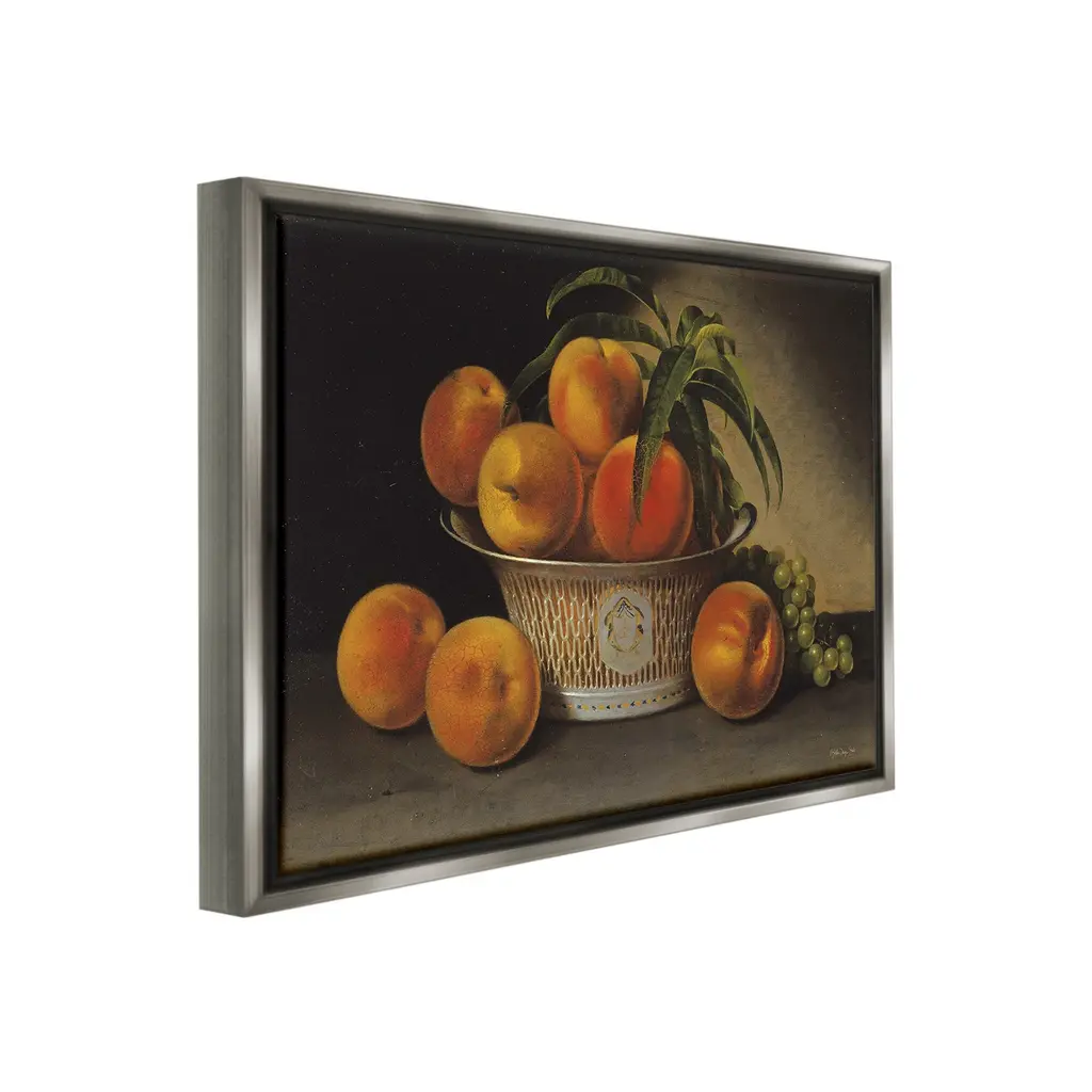 Elevate your home or office to the next level with Stupell Framed Floating Canvas Wall Art. Our premium hand-stretched canvas is mounted securely into a sturdy lightweight frame. The museum-style gap between the wrapped canvas and the box frame gives the illusion of floating artwork. Stupell Wall Art is made in the USA.Features: Dimensions: 21 x 1.7 x 17 Frame, 20 x 1.5 x 16 Canvas ArtFloating Frame Canvas Products are available in sizes 21"x17" and 31"x25". All Floating Frame Canvas Products have a 1.7" Depth.Wall Art is Ready to Hang with Hardware Free Hanging. No Installation required. For Easy Set Up Lean or Layer Artwork on Shelf or Against Wall. Artwork is Permently Fixed into the Frame.Our elevated 1.7" Thick Floating Frame is the perfect complement to our canvas style Wall Art. We use only the highest quality inks in house with industry leading printing solutions. Canvas is hand stretched over a durable wood foundation and then mounted securly into a Modern Box Frame. Made in the USA.Artwork Relates To: Food, Fruit, Plant, Produce, Peach, Grapes, Plant, Botanical, Traditional, Still LifeDesign by Steller Design Studio