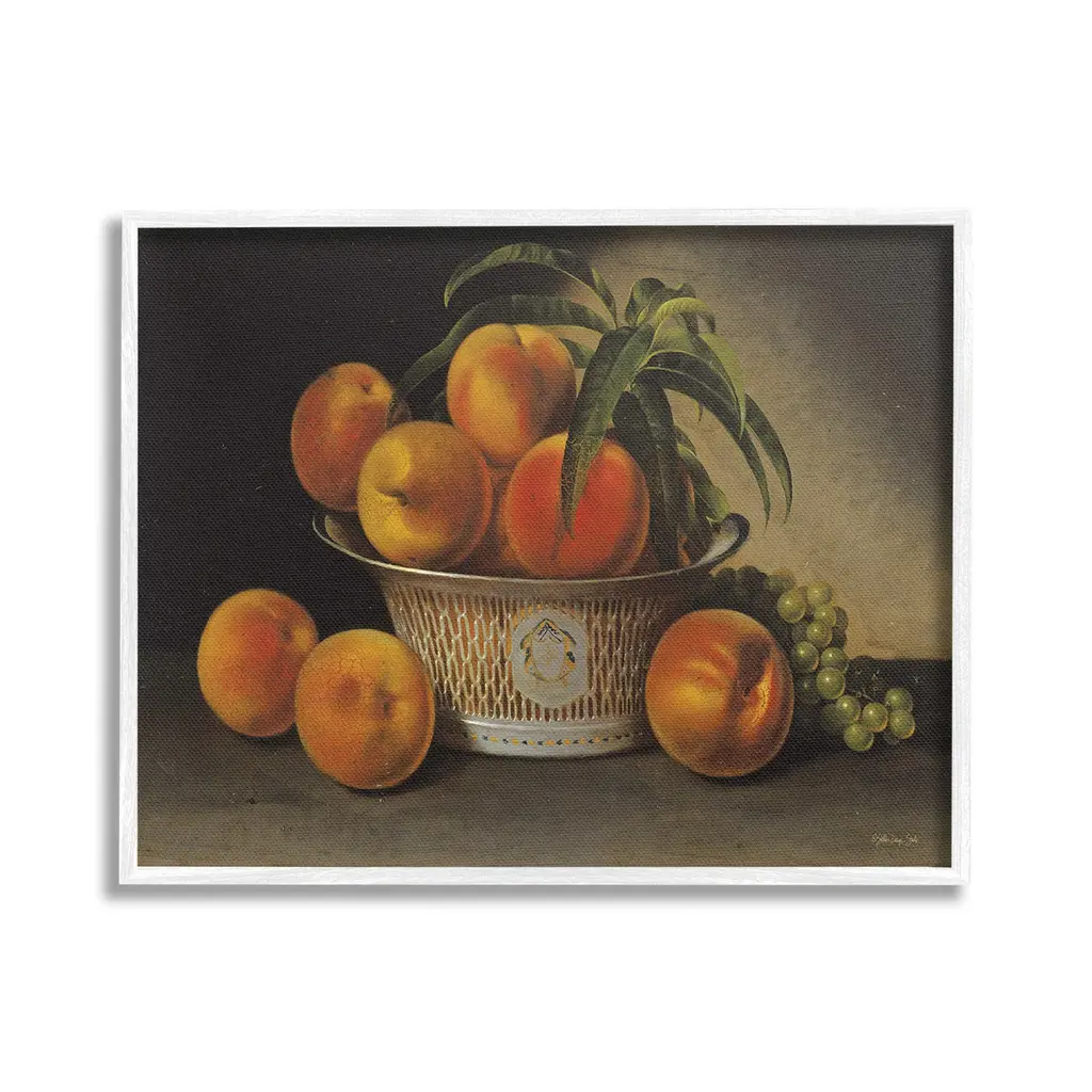 Add dimension to any room with our textured Framed Giclee Artwork. Our framed artwork is securely mounted into a 1.5-inch thick wood grain frame and ready to hang. Frames are available in three alluring styles: black, gray farmhouse and white. In addition, you should check out our oversized options if you want a statement piece. Stupell Wall Art is made in the USA.Features: Dimensions: 14 x 1.5 x 11 FramedFramed Giclee Products are available in the sizes 14"x11", 20"x16" or 30"x24". All Framed Giclee Products have a 1.5" Depth. Wall Art is Ready to Hang with Hardware Free Hanging. No installation required. For Easy Set Up Lean or Layer Artwork on Shelf or Against Wall.Our giclée prints are carefully mounted on a durable MDF backing, and then perfectly finished in a 1.5 inch thick woodgrain frame. Mounted frame colors include black, gray farmhouse and white. Made In USA.Artwork Relates To: Food, Fruit, Plant, Produce, Peach, Grapes, Plant, Botanical, Traditional, Still LifeDesign by Steller Design Studio