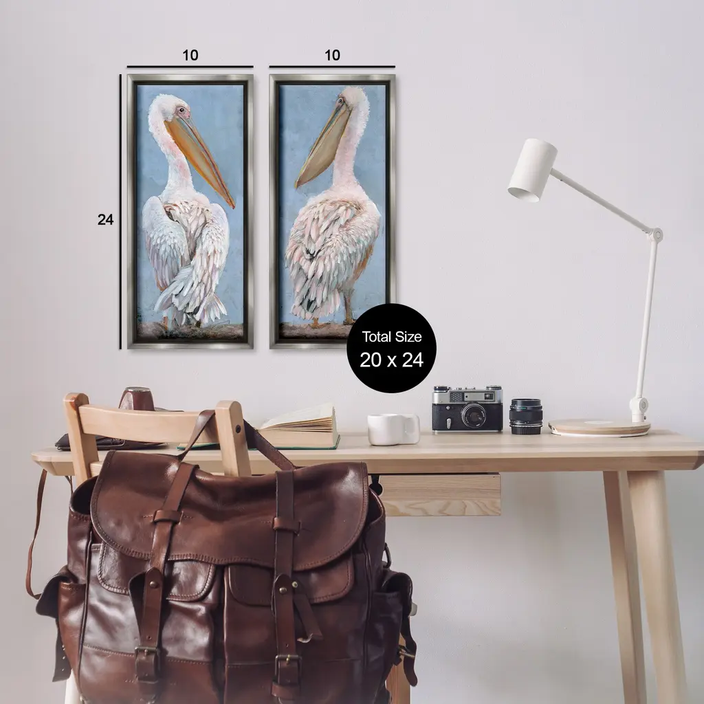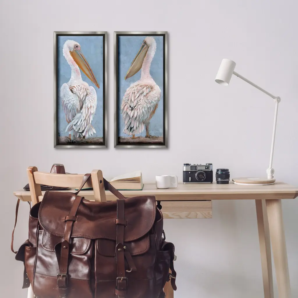 Elevate your home or office to the next level with Stupell Framed Floating Canvas Wall Art. Our premium hand-stretched canvas is mounted securely into a sturdy lightweight frame. The museum-style gap between the wrapped canvas and the box frame gives the illusion of floating artwork. Stupell Wall Art is made in the USA.Features: Dimensions: 2 Piece Set, Each Frame is 11 x 1.7 x 25Two Piece Floating Frame Canvas Products are available as 11"x25" or 14"x31" Panels. All Floating Frame Canvas Products have a 1.7" Depth.Wall Art is Ready to Hang with Hardware Free Hanging. No Installation required. For Easy Set Up Lean or Layer Artwork on Shelf or Against Wall. Artwork is Permently Fixed into the Frame.Our elevated 1.7" Thick Floating Frame is the perfect complement to our canvas style Wall Art. We use only the highest quality inks in house with industry leading printing solutions. Canvas is hand stretched over a durable wood foundation and then mounted securly into a Modern Box Frame. Made in the USA.Artwork Relates To: Animal, Bird, Waterfowl, Pelican, Nautical, Beach, PortraitDesign by Steller Design Studio