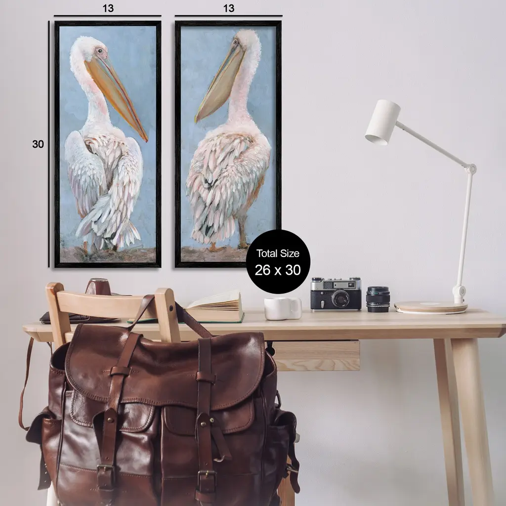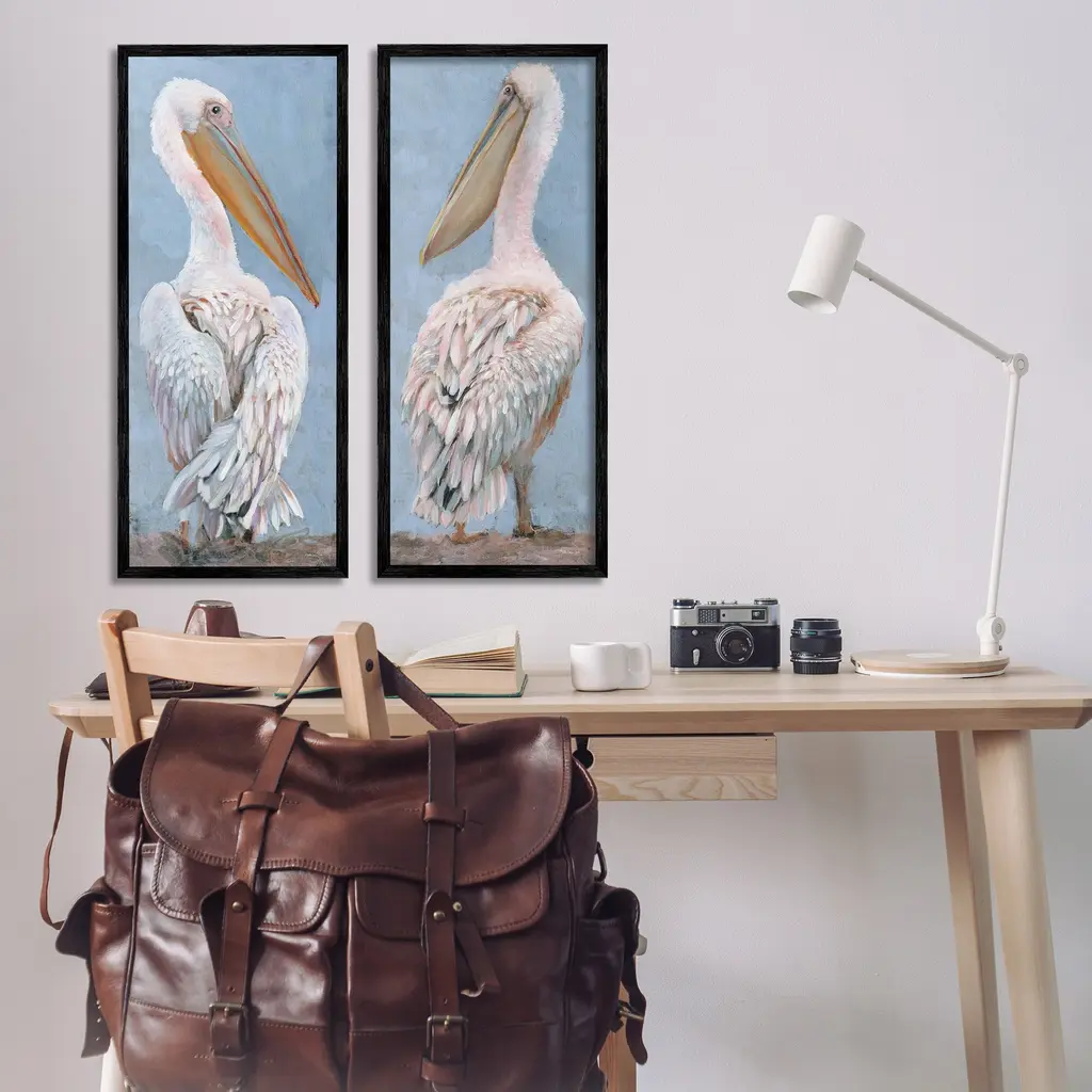 Fill any space in your home or office with our Framed Wall Art Sets. Our framed artwork is securely mounted into a 1.5-inch thick wood grain frame and ready to hang. Frames are available in three alluring styles: black, gray farmhouse and white. Stupell Wall Art is made in the USA.Features: Dimensions: 2 Piece Set, Each Panel is 10 x 1.5 x 24 FramedTwo Piece Framed Giclee Sets are available as 10"x24" or 13"x30" Panels. All Framed Giclee Panels have a 1.5" Depth. Wall Art is Ready to Hang with Hardware Free Hanging. No installation required. For Easy Set Up Lean or Layer Artwork on Shelf or Against Wall.Curated Wall Art Sets make it easy for you complete the theme for any room. Our giclée prints are carefully mounted on a durable MDF backing, and then perfectly finished in a 1.5 inch thick woodgrain frame. Mounted frame colors include black, gray farmhouse and white. Made In USA.Artwork Relates To: Animal, Bird, Waterfowl, Pelican, Nautical, Beach, PortraitDesign by Steller Design Studio