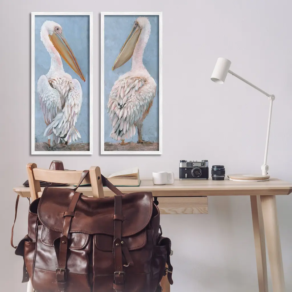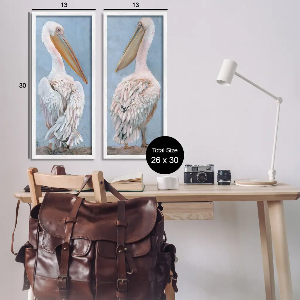 Fill any space in your home or office with our Framed Wall Art Sets. Our framed artwork is securely mounted into a 1.5-inch thick wood grain frame and ready to hang. Frames are available in three alluring styles: black, gray farmhouse and white. Stupell Wall Art is made in the USA.Features: Dimensions: 2 Piece Set, Each Panel is 10 x 1.5 x 24 FramedTwo Piece Framed Giclee Sets are available as 10"x24" or 13"x30" Panels. All Framed Giclee Panels have a 1.5" Depth. Wall Art is Ready to Hang with Hardware Free Hanging. No installation required. For Easy Set Up Lean or Layer Artwork on Shelf or Against Wall.Curated Wall Art Sets make it easy for you complete the theme for any room. Our giclée prints are carefully mounted on a durable MDF backing, and then perfectly finished in a 1.5 inch thick woodgrain frame. Mounted frame colors include black, gray farmhouse and white. Made In USA.Artwork Relates To: Animal, Bird, Waterfowl, Pelican, Nautical, Beach, PortraitDesign by Steller Design Studio