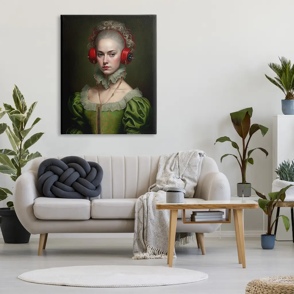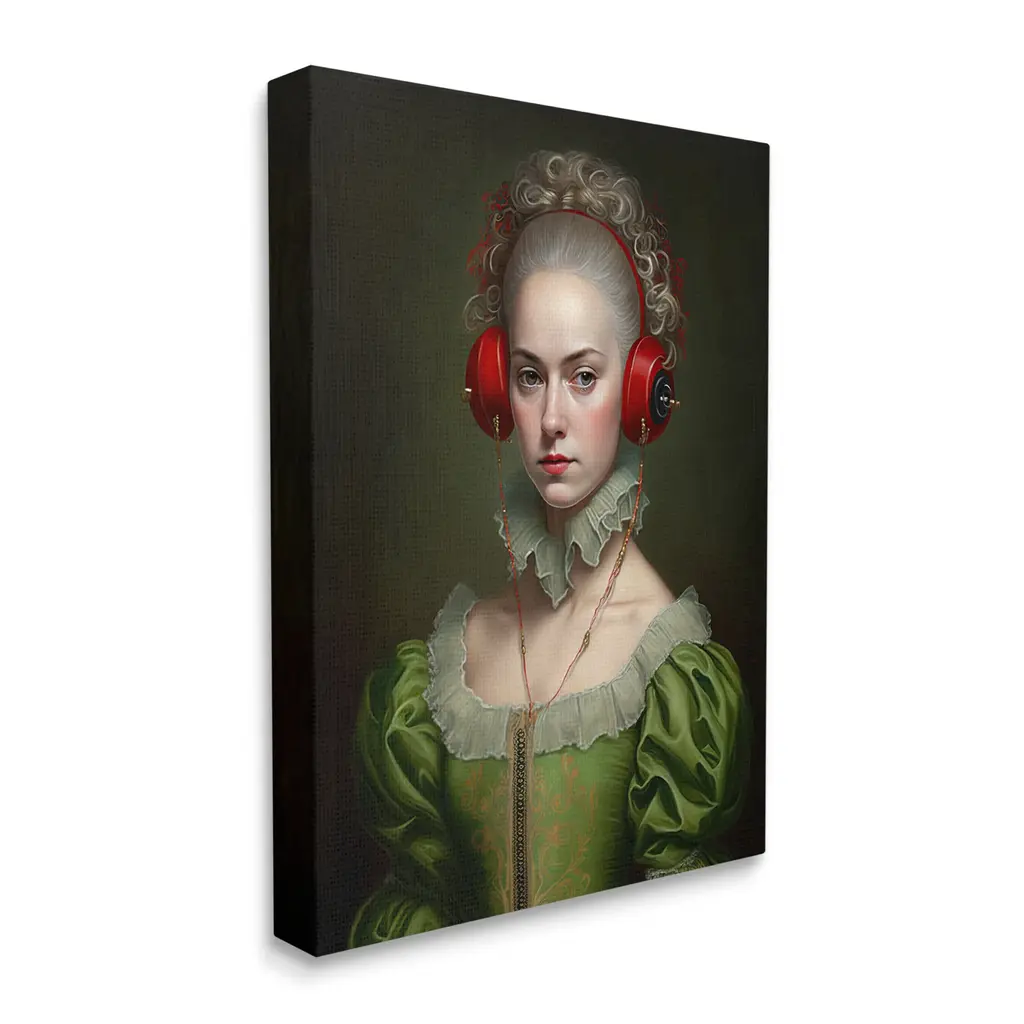 We create our stretched canvas to the highest standards. Using only the highest quality inks and canvas on Mimaki printers, we hand-cut and stretch each piece over a 1.5-inch thick wooden frame for hanging. As a result, the art comes ready to hang on the sturdy ledge with no installation required. Stupell Wall Art is made in the USA.Features: Dimensions: 16 x 1.5 x 20 InchesStretched Canvas Sizes Include Standard: 16 x 1.5 x 20 Large: 20 x 1.5 x 30 X-Large: 30 x 1.5 x 40 Oversized: 36 x 1.5 x 48Wall Art is Ready to Hang with Hardware Free Hanging. No installation required. For Easy Set Up Lean or Layer Artwork on Shelf or Against Wall.Our stretched canvas is created with the highest standards. We use only the highest quality inks and canvas on our in house Mimaki printers, and then hand cut and stretch each piece over a 1.5 inch thick wooden frame for hanging. Made In USA.Artwork Relates To: Lady, Person, Painting, Photography, Portrait, Headphones, ClassicDesign by Birch&Ink