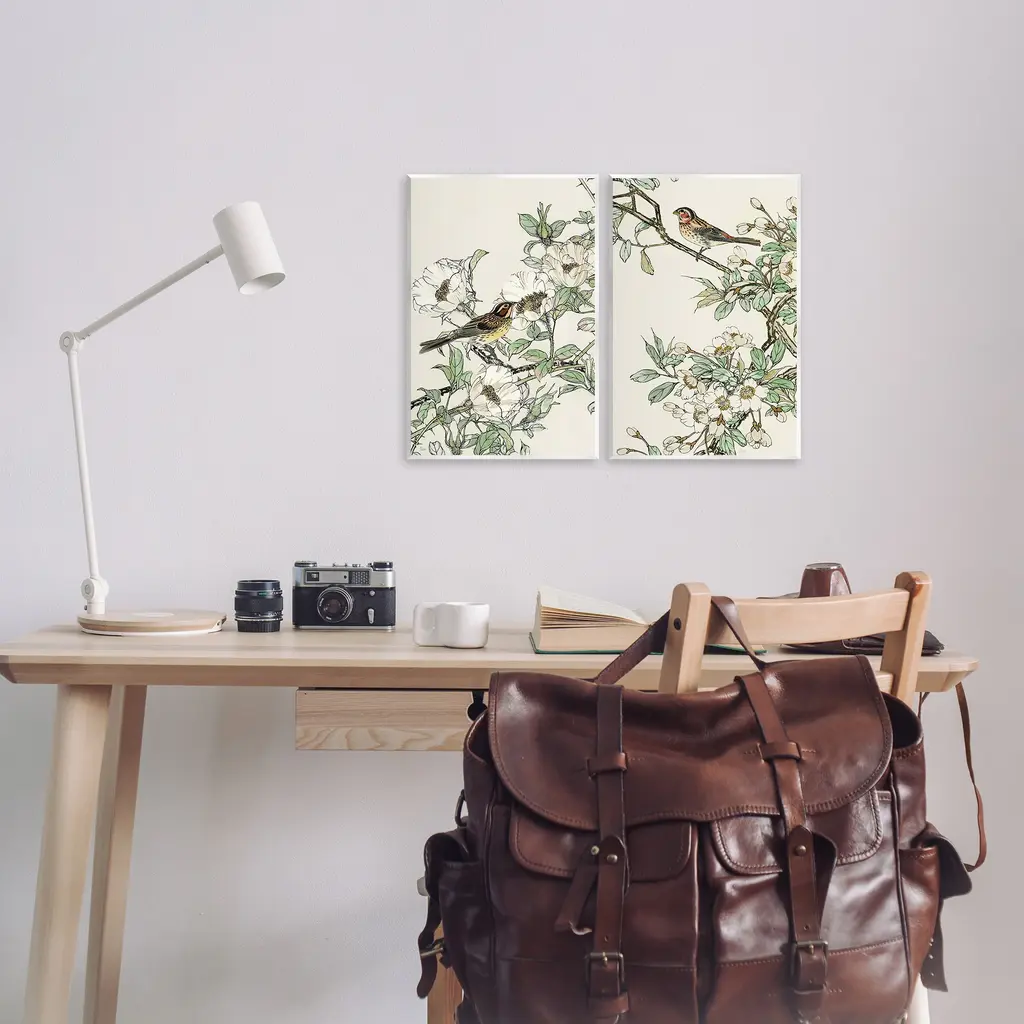 Fill any space with Stupell Wall Art Sets. Our wall plaques start as high-quality lithograph prints mounted on durable 0.5-inch thick MDF wood. Each piece is hand finished and comes with a fresh layer of white foil on the sides to give it a crisp, clean look. Plaques arrive ready to hang without installation and come with removable plastic corners to keep them from damage in transit. Wall Art is made in the USA.Features: Dimensions: 2 Piece Set, Each Panel is 10 x 0.5 x 15 InchesWall Plaque Set Sizes Include Standard: 2pc, Each is 10 x 0.5 x 15 Oversized: 2pc, Each is 13 x 0.5 x 19Wall Art is Ready to Hang with Hardware Free Hanging. No installation required. For Easy Set Up Lean or Layer Artwork on Shelf or Against Wall.All of our wall plaques start off as high quality lithograph prints that are then mounted on durable 0.5 inch thick MDF wood. Each piece is hand finished and comes with a fresh layer of foil on the sides to give it a crisp clean look. Made In USA.Artwork Relates To: Animal, Bird, Floral, Drawing, Sparrow, Finch, Flower, Plant, LeafDesign by Nan