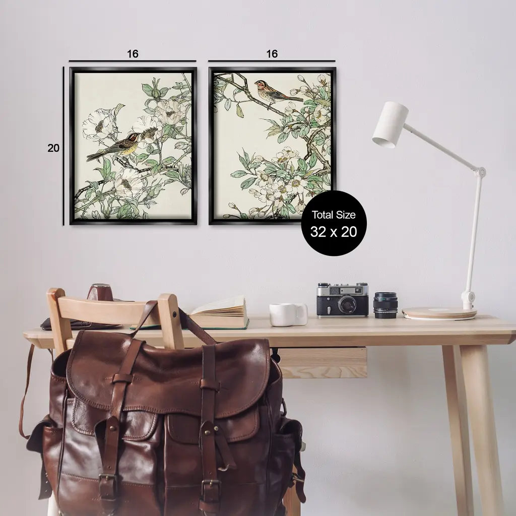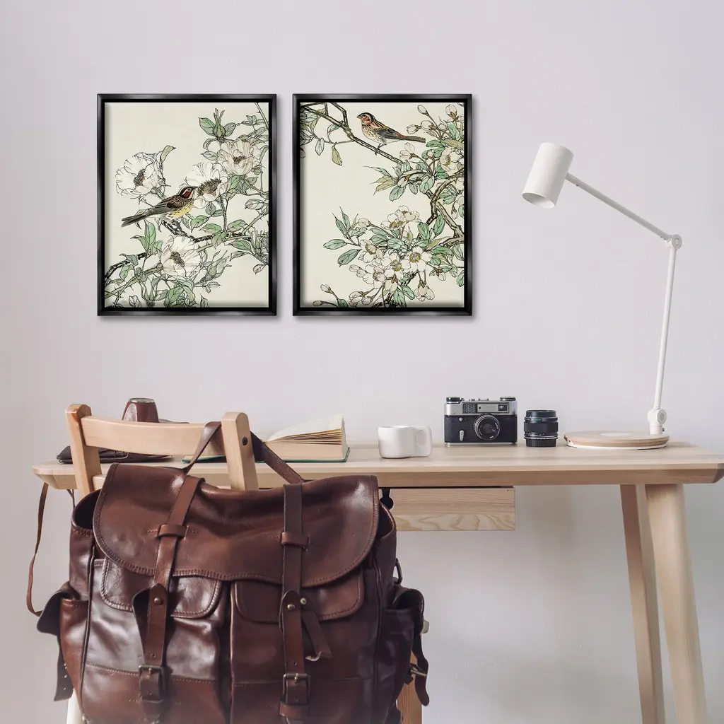 Elevate your home or office to the next level with Stupell Framed Floating Canvas Wall Art. Our premium hand-stretched canvas is mounted securely into a sturdy lightweight frame. The museum-style gap between the wrapped canvas and the box frame gives the illusion of floating artwork. Stupell Wall Art is made in the USA.Features: Dimensions: 2 Piece Set, Each Frame is 17 x 1.7 x 21Two Piece Floater Framed Canvas are available as 17x21 or 25x31 Panels. All Floater Frame Products have a 1.7" Depth.Wall Art is Ready to Hang with Hardware Free Hanging. No Installation required. For Easy Set Up Lean or Layer Artwork on Shelf or Against Wall. Artwork is Permently Fixed into the Frame.Our elevated 1.7" Thick Floating Frame is the perfect complement to our canvas style Wall Art. We use only the highest quality inks in house with industry leading printing solutions. Canvas is hand stretched over a durable wood foundation and then mounted securly into a Modern Box Frame. Made in the USA.Artwork Relates To: Animal, Bird, Floral, Drawing, Sparrow, Finch, Flower, Plant, LeafDesign by Nan