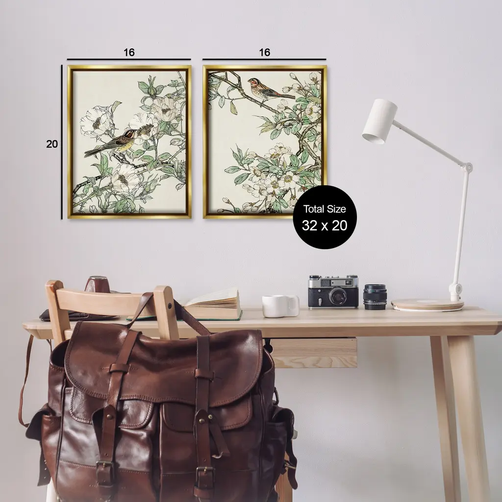 Stupell Classic Sparrow On Blossoms Framed Floater Canvas Wall Art Design By Nan (Set Of 2) - 17 X 21 - Gold