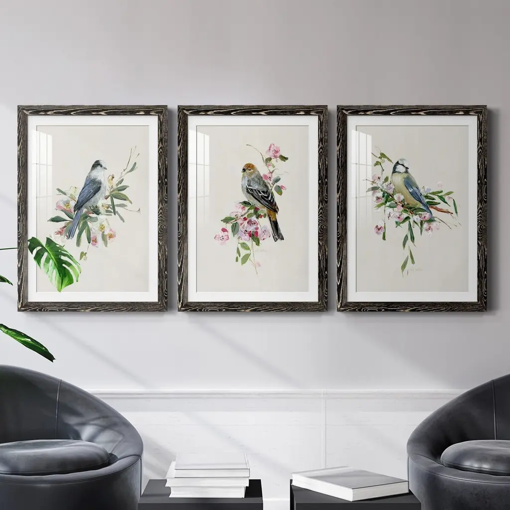 Stupell Classic Sparrow On Blossoms Framed Floater Canvas Wall Art Design By Nan (Set Of 2) - 25 X 31 - Black