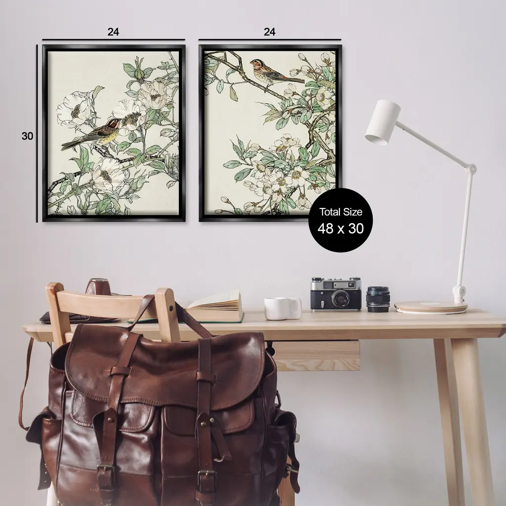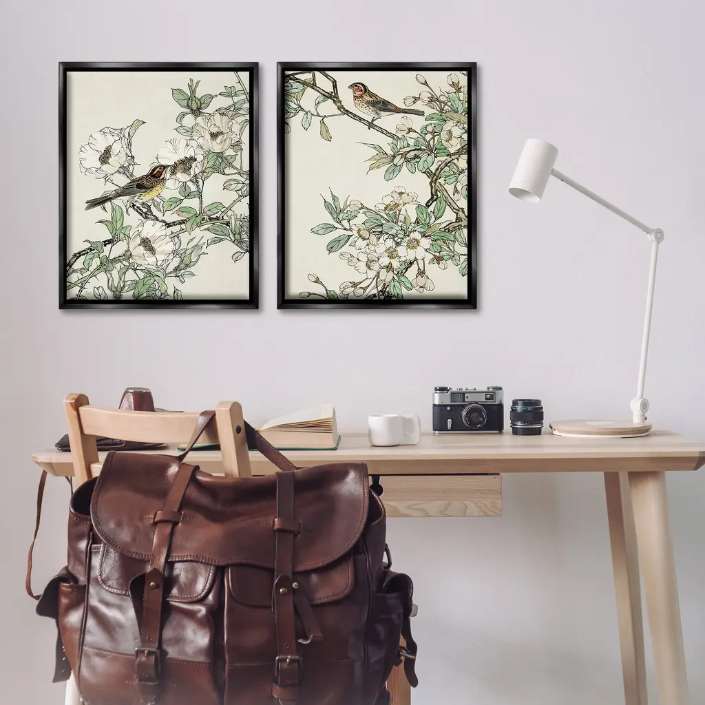 Elevate your home or office to the next level with Stupell Framed Floating Canvas Wall Art. Our premium hand-stretched canvas is mounted securely into a sturdy lightweight frame. The museum-style gap between the wrapped canvas and the box frame gives the illusion of floating artwork. Stupell Wall Art is made in the USA.Features: Dimensions: 2 Piece Set, Each Frame is 17 x 1.7 x 21Two Piece Floater Framed Canvas are available as 17x21 or 25x31 Panels. All Floater Frame Products have a 1.7" Depth.Wall Art is Ready to Hang with Hardware Free Hanging. No Installation required. For Easy Set Up Lean or Layer Artwork on Shelf or Against Wall. Artwork is Permently Fixed into the Frame.Our elevated 1.7" Thick Floating Frame is the perfect complement to our canvas style Wall Art. We use only the highest quality inks in house with industry leading printing solutions. Canvas is hand stretched over a durable wood foundation and then mounted securly into a Modern Box Frame. Made in the USA.Artwork Relates To: Animal, Bird, Floral, Drawing, Sparrow, Finch, Flower, Plant, LeafDesign by Nan