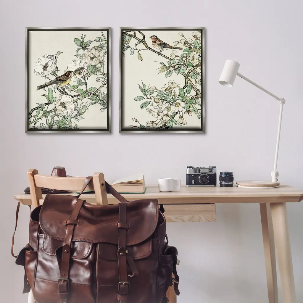 Stupell Classic Sparrow On Blossoms Framed Floater Canvas Wall Art Design By Nan (Set Of 2) - 25 X 31 - Grey