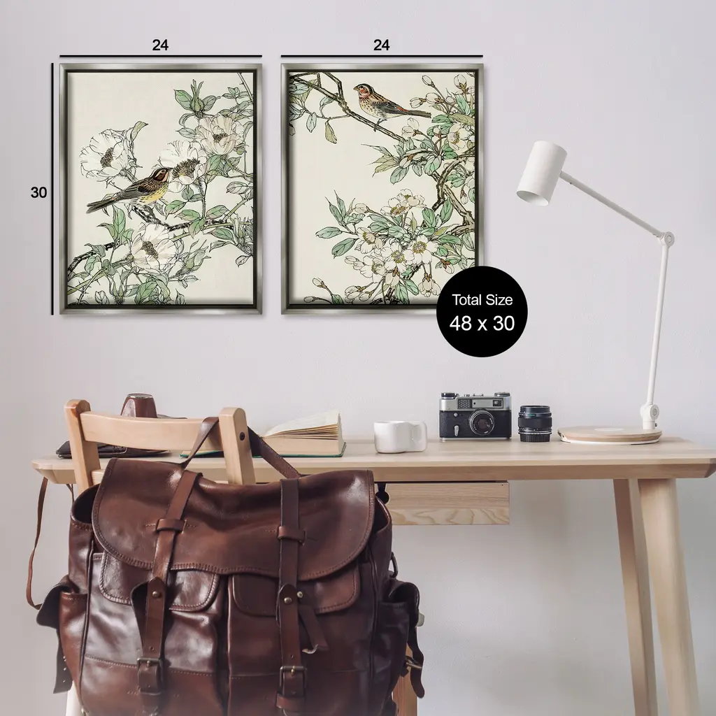 Elevate your home or office to the next level with Stupell Framed Floating Canvas Wall Art. Our premium hand-stretched canvas is mounted securely into a sturdy lightweight frame. The museum-style gap between the wrapped canvas and the box frame gives the illusion of floating artwork. Stupell Wall Art is made in the USA.Features: Dimensions: 2 Piece Set, Each Frame is 17 x 1.7 x 21Two Piece Floater Framed Canvas are available as 17x21 or 25x31 Panels. All Floater Frame Products have a 1.7" Depth.Wall Art is Ready to Hang with Hardware Free Hanging. No Installation required. For Easy Set Up Lean or Layer Artwork on Shelf or Against Wall. Artwork is Permently Fixed into the Frame.Our elevated 1.7" Thick Floating Frame is the perfect complement to our canvas style Wall Art. We use only the highest quality inks in house with industry leading printing solutions. Canvas is hand stretched over a durable wood foundation and then mounted securly into a Modern Box Frame. Made in the USA.Artwork Relates To: Animal, Bird, Floral, Drawing, Sparrow, Finch, Flower, Plant, LeafDesign by Nan