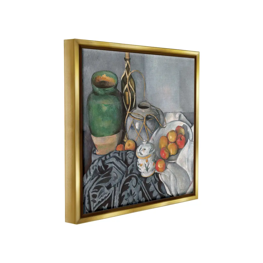Elevate your home or office to the next level with Stupell Framed Floating Canvas Wall Art. Our premium hand-stretched canvas is mounted securely into a sturdy lightweight frame. The museum-style gap between the wrapped canvas and the box frame gives the illusion of floating artwork. Stupell Wall Art is made in the USA.Features: Dimensions: 18 x 1.7 x 18 Frame, 17 x 1.5 x 17 Canvas ArtFloating Frame Canvas Products are available in sizes 18"x18" and 25"x25". All Floating Frame Canvas Products have a 1.7" Depth.Wall Art is Ready to Hang with Hardware Free Hanging. No Installation required. For Easy Set Up Lean or Layer Artwork on Shelf or Against Wall. Artwork is Permently Fixed into the Frame.Our elevated 1.7" Thick Floating Frame is the perfect complement to our canvas style Wall Art. We use only the highest quality inks in house with industry leading printing solutions. Canvas is hand stretched over a durable wood foundation and then mounted securly into a Modern Box Frame. Made in the USA.Artwork Relates To: Painting, Jar, Pottery, Table, Modern, Still Life, Traditional, Apple, Fruit, BottleDesign by Stellar Design Studio
