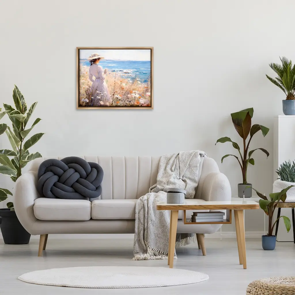 Elevate your home or office to the next level with Stupell Framed Floating Canvas Wall Art. Our premium hand-stretched canvas is mounted securely into a sturdy lightweight frame. The museum-style gap between the wrapped canvas and the box frame gives the illusion of floating artwork. Stupell Wall Art is made in the USA.Features: Dimensions: 21 x 1.7 x 17 Frame, 20 x 1.5 x 16 Canvas ArtFloating Frame Canvas Products are available in sizes 21"x17" and 31"x25". All Floating Frame Canvas Products have a 1.7" Depth.Wall Art is Ready to Hang with Hardware Free Hanging. No Installation required. For Easy Set Up Lean or Layer Artwork on Shelf or Against Wall. Artwork is Permently Fixed into the Frame.Our elevated 1.7" Thick Floating Frame is the perfect complement to our canvas style Wall Art. We use only the highest quality inks in house with industry leading printing solutions. Canvas is hand stretched over a durable wood foundation and then mounted securly into a Modern Box Frame. Made in the USA.Artwork Relates To: Female, Person, Woman, Nature, Scenery, Clothing, Hat, Portrait, Landscape, Flower, Plant, Sea, Water, Beach, Shore, Nautical, TraditionalDesign by RB