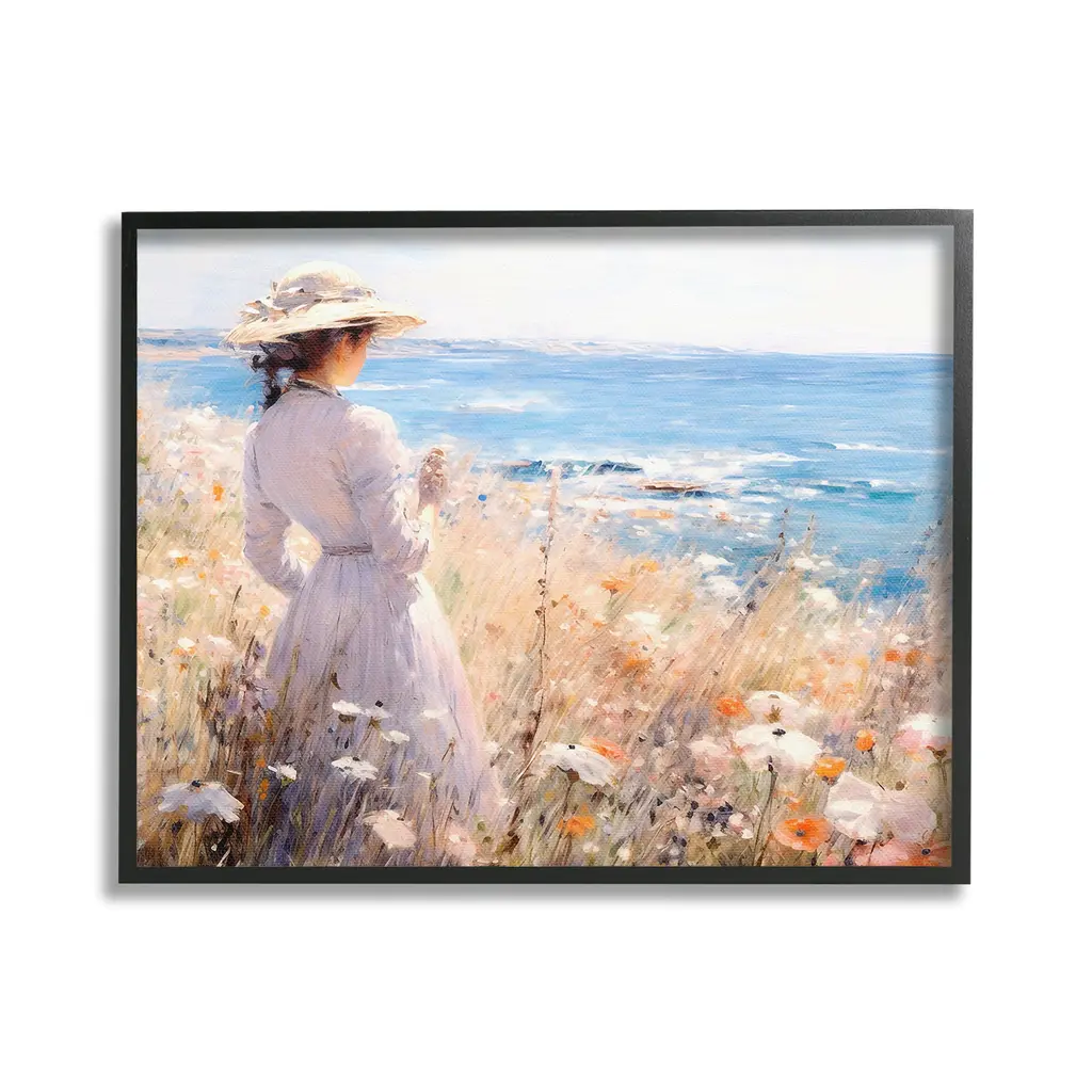 Add dimension to any room with our textured Framed Giclee Artwork. Our framed artwork is securely mounted into a 1.5-inch thick wood grain frame and ready to hang. Frames are available in three alluring styles: black, gray farmhouse and white. In addition, you should check out our oversized options if you want a statement piece. Stupell Wall Art is made in the USA.Features: Dimensions: 14 x 1.5 x 11 FramedFramed Giclee Products are available in the sizes 14"x11", 20"x16" or 30"x24". All Framed Giclee Products have a 1.5" Depth. Wall Art is Ready to Hang with Hardware Free Hanging. No installation required. For Easy Set Up Lean or Layer Artwork on Shelf or Against Wall.Our giclée prints are carefully mounted on a durable MDF backing, and then perfectly finished in a 1.5 inch thick woodgrain frame. Mounted frame colors include black, gray farmhouse and white. Made In USA.Artwork Relates To: Female, Person, Woman, Nature, Scenery, Clothing, Hat, Portrait, Landscape, Flower, Plant, Sea, Water, Beach, Shore, Nautical, TraditionalDesign by RB