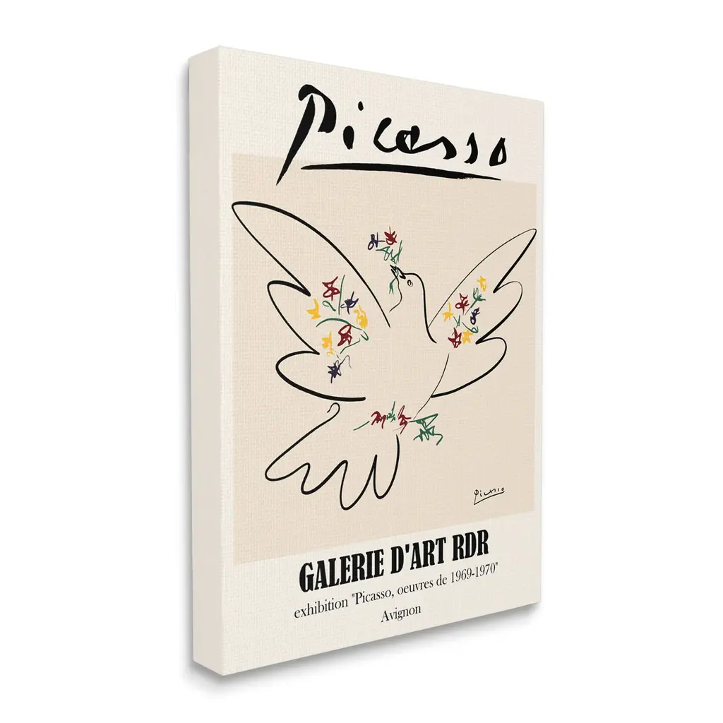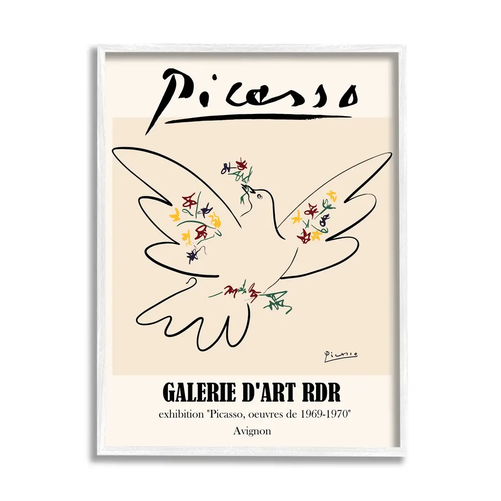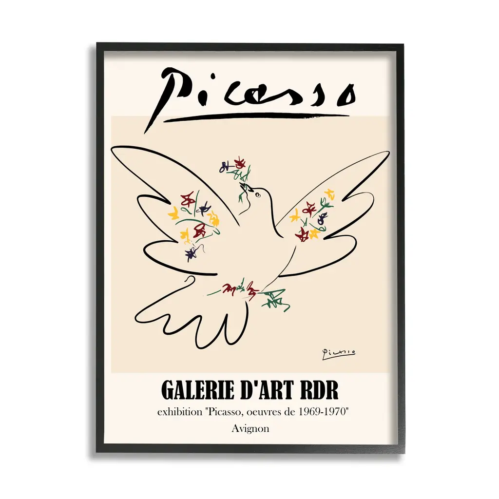 Stupell Classical Abstract Picasso Peace Dove Bird Linework Framed Wall Art - 16 X 20 - Grey