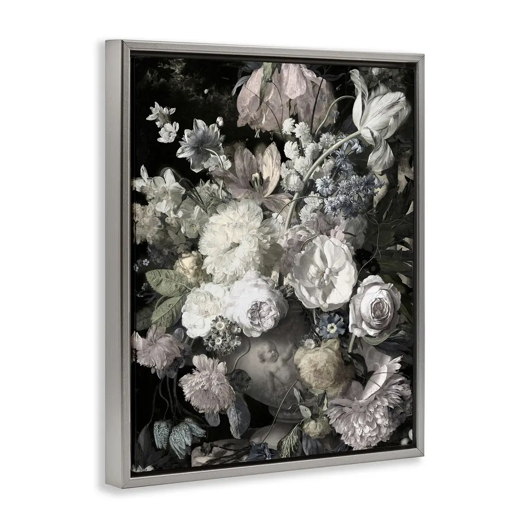 Stupell Classical Busy Flower Bouquet Framed Floater Canvas Wall Art Design By Angela Mcqueen - 17 X 21 - Grey