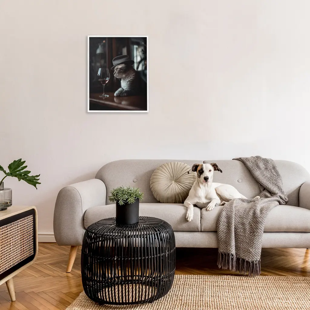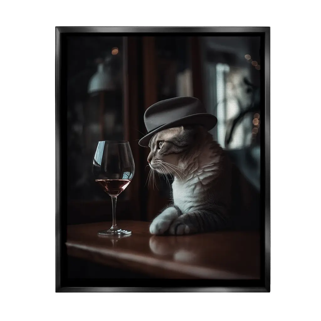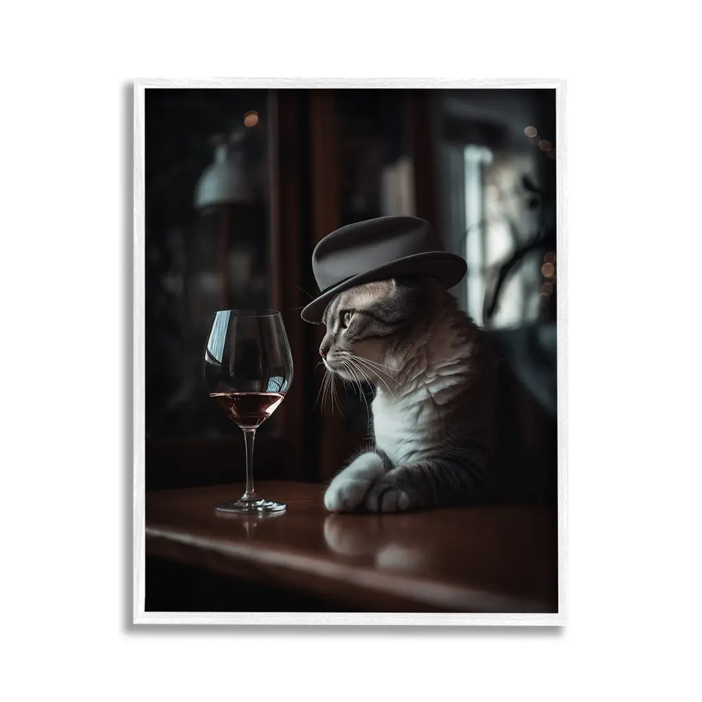 Add dimension to any room with our textured Framed Giclee Artwork. Our framed artwork is securely mounted into a 1.5-inch thick wood grain frame and ready to hang. Frames are available in three alluring styles: black, gray farmhouse and white. In addition, you should check out our oversized options if you want a statement piece. Stupell Wall Art is made in the USA.Features: Dimensions: 11 x 1.5 x 14 FramedFramed Giclee Products are available in the sizes 11"x14", 16"x20" or 24"x30". All Framed Giclee Products have a 1.5" Depth. Wall Art is Ready to Hang with Hardware Free Hanging. No installation required. For Easy Set Up Lean or Layer Artwork on Shelf or Against Wall.Our giclée prints are carefully mounted on a durable MDF backing, and then perfectly finished in a 1.5 inch thick woodgrain frame. Mounted frame colors include black, gray farmhouse and white. Made In USA.Artwork Relates To: Glass, Alcohol, Beverage, Liquor, Wine, Animal, Cat, Mammal, Pet, Bar, HatDesign by Ziwei Li