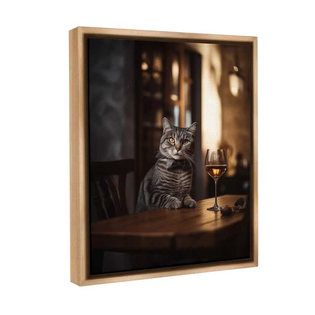 Elevate your home or office to the next level with Stupell Framed Floating Canvas Wall Art. Our premium hand-stretched canvas is mounted securely into a sturdy lightweight frame. The museum-style gap between the wrapped canvas and the box frame gives the illusion of floating artwork. Stupell Wall Art is made in the USA.Features: Dimensions: 17 x 1.7 x 21 Frame, 16 x 1.5 x 20 Canvas ArtFloating Frame Canvas Products are available in sizes 17"x21" and 25"x31". All Floating Frame Canvas Products have a 1.7" Depth.Wall Art is Ready to Hang with Hardware Free Hanging. No Installation required. For Easy Set Up Lean or Layer Artwork on Shelf or Against Wall. Artwork is Permently Fixed into the Frame.Our elevated 1.7" Thick Floating Frame is the perfect complement to our canvas style Wall Art. We use only the highest quality inks in house with industry leading printing solutions. Canvas is hand stretched over a durable wood foundation and then mounted securly into a Modern Box Frame. Made in the USA.Artwork Relates To: Glass, Alcohol, Beverage, Liquor, Wine, Animal, Cat, Mammal, Pet, Bar, HatDesign by Ziwei Li